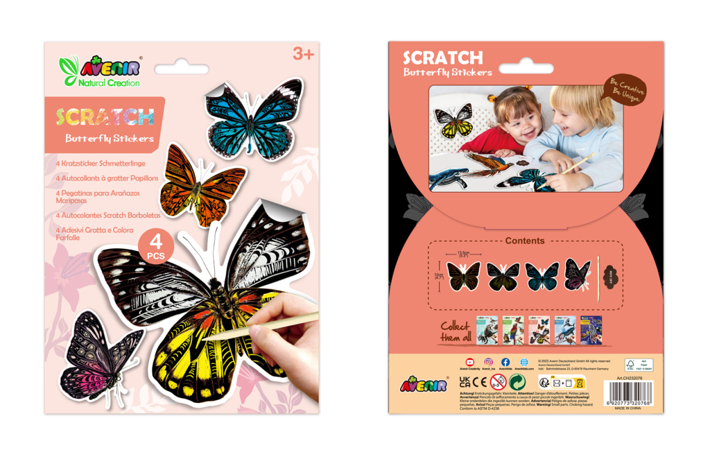 Adaugati un strop de magie si eleganta in activitatile creative ale copilului dvs. cu Abtibildurile razuibile - Fluturi din colectia Creatii Naturale! Aceste abtibilduri sunt ideale pentru micii artisti care iubesc natura si doresc sa exploreze frumusetea fluturilor intr-un mod interactiv si captivant. Caracteristici principale: Tematica Fluturilor: Setul contine abtibilduri cu designuri delicate si colorate de fluturi, fiecare detaliu fiind inspirat de natura. Modelele variate si vibrante transforma orice suprafata intr-un loc fermecat, plin de culoare si gratie. Efect Razuilibil: Abtibildurile sunt echipate cu un strat special care poate fi razuit pentru a dezvalui culori si imagini ascunse. Acest efect interactiv adauga o dimensiune surprinzatoare si educativa, stimuland curiozitatea si imaginatia copiilor. Aplicare Usoara: Se aplica simplu si rapid pe orice suprafata curata si uscata, inclusiv caiete, pereti, jucarii si multe altele. Perfecte pentru personalizarea obiectelor si decorarea camerei cu teme de natura. Siguranta si Calitate: Abtibildurile sunt fabricate din materiale non-toxice si sigure pentru copii, asigurand o experienta placuta si fara riscuri. Parintii pot fi siguri ca produsul este de inalta calitate si potrivit pentru utilizarea de catre cei mici. Usor de Indepartat: Abtibildurile se indeparteaza fara efort, fara a lasa urme lipicioase sau reziduuri, facilitand schimbarea frecventa a decorului si pastrand suprafetele curate. Cadou Perfect: Cu designul sau atragator si efectul captivant de razuire, setul de abtibilduri razuibile - Fluturi este cadoul ideal pentru copiii pasionati de natura si de arta creativa. Dimensiuni: Setul include abtibilduri de dimensiuni variate, potrivite pentru diverse aplicatii si suprafete. Instructiuni de utilizare: Alegeti o suprafata curata si uscata. Aplicati abtibildurile cu grija si folositi un instrument de razuit (inclus) pentru a descoperi culorile ascunse. Dupa utilizare, abtibildurile pot fi indepartate fara probleme. 4 abtibilduri razuibile cu fluturi. Contine : 4 abtibilduri razuibile 1 stilou pentru razuit 1 servetel de curatare in forma de nor Materiale : Hartie stilou de bambus material textil Atentie! Piese mici. Pericol de sufocare.