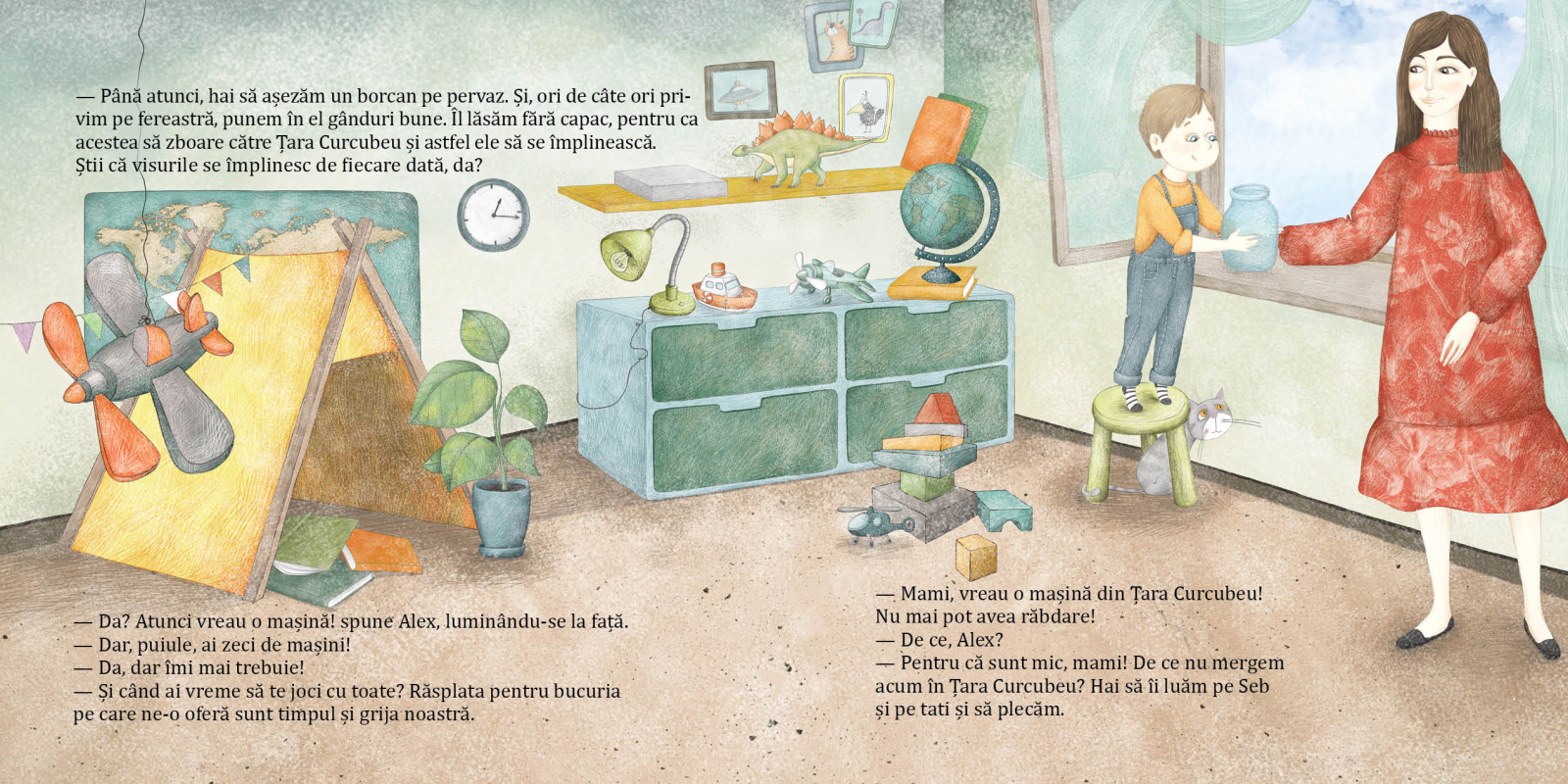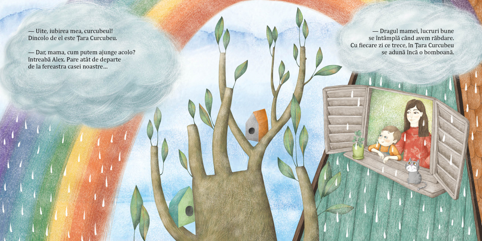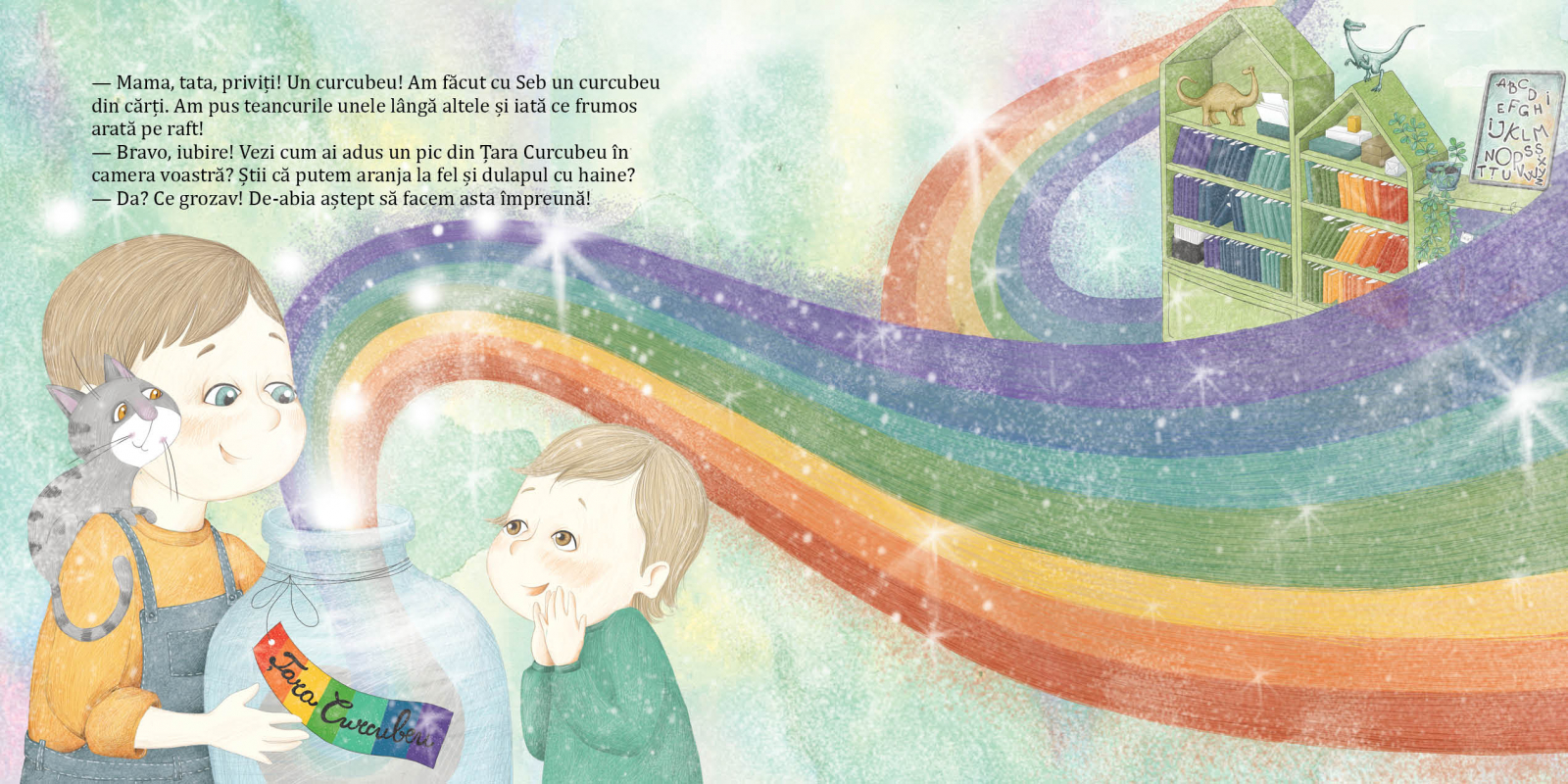 Alex și Seb în Țara Curcubeu este o carte care îi învață pe cei mici importanța răbdării, a generozității și a organizării.