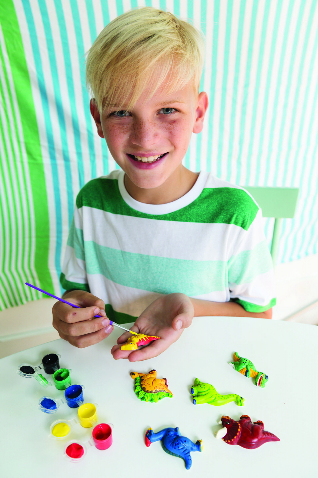 Modelati si pictati magneti de frigider si insigne adorabile. Sunt cadouri grozave pentru prieteni si familie! Matrita cu 6 modele, pudra de ipsos, magnet, stifturi, banda de vopsea in 6 culori, vopsea stralucitoare, pensula si instructiuni detaliate. Continutul este suficient pentru a face 6 dinozauri. Dimensiuni cutie: 21.3 X 18.2 X 5 CM Varsta ani: 5 ani+