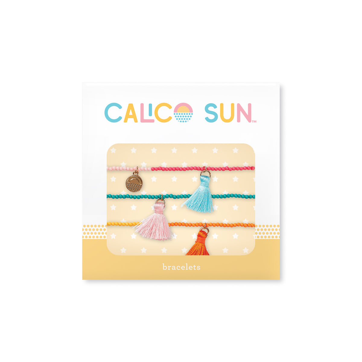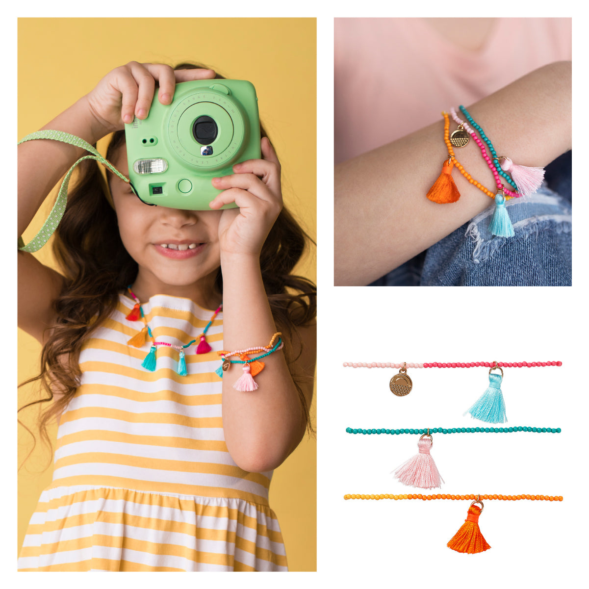 Un set de 3 bratari vibrante, multicolore, cu margele, are accente de ciucuri pufosi in nuante stralucitoare. Margelele minuscule fac ca aceste benzi de margele pestrite sa fie distractive de purtat, iar ciucurii vibranti cu pene sporesc placerea. Facut pentru a imbunatati orice tinuta cu culori portocaliu, galben, verde, albastru si roz si multe altele. In plus, la una dintre benzile de margele este atasat un mic charm Calico Sun. Toate cele 3 bratari sunt pe benzi elastice pentru a asigura o potrivire perfecta. Pentru a-ti completa perechea de ansamblu cu colierul Ashley Tassel. Acest set de bratari cu margele multicolore va aduce cu siguranta zambete in fiecare zi! , Bratara cu ciucuri , Set de 3 bratari stratificate , Bratari cu margele multicolore cu ciucuri , Banda elastica , Potrivit pentru varsta de 3 ani in sus Dimensiune cutie cm: 0.64 X 10.16 X 10.16 Greutate: 16 grame Nu este potrivit pentru copiii sub 3 ani din cauza pieselor mici. Pericol de sufocare.