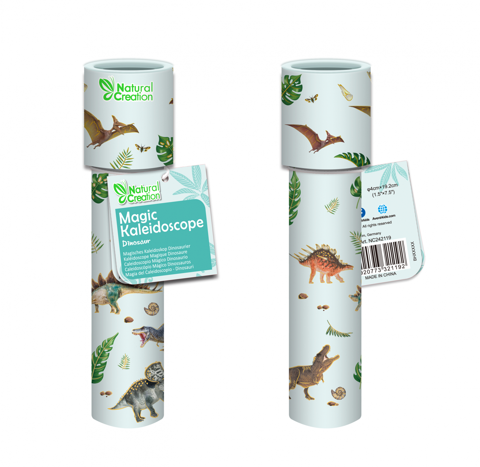 Caleidoscop Colectia Creatii Naturale - Dinozaur Descopera forme si culori fascinante cu acest caleidoscop decorat cu dinozauri! Fiecare intoarcere a tubului creeaza modele simetrice uimitoare. Caracteristici principale: Tub caleidoscop cu design dinozauri Modele care se schimba la fiecare intoarcere Experienta vizuala captivanta si creativa Recomandat copiilor de la 3 ani in sus. Materiale sigure si durabile.