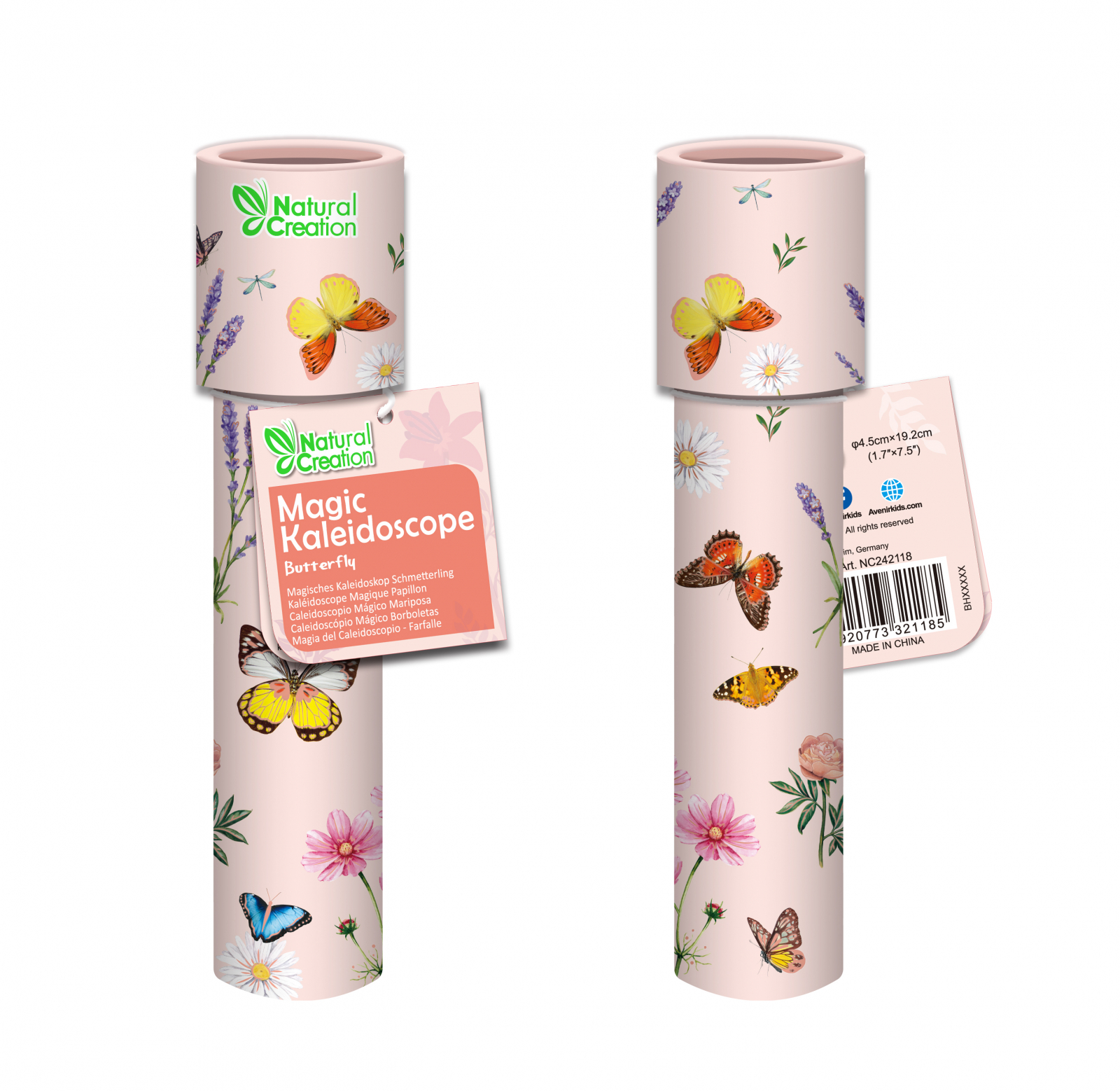 Caleidoscop Colectia Creatii Naturale - Fluture Descopera modele colorate si fascinante cu acest caleidoscop decorat cu fluturi! Fiecare intoarcere a tubului creeaza forme simetrice uimitoare. Caracteristici principale: Tub caleidoscop cu design fluturi Modele care se schimba la fiecare intoarcere Experienta vizuala captivanta si creativa Recomandat copiilor de la 3 ani in sus. Materiale sigure si durabile.