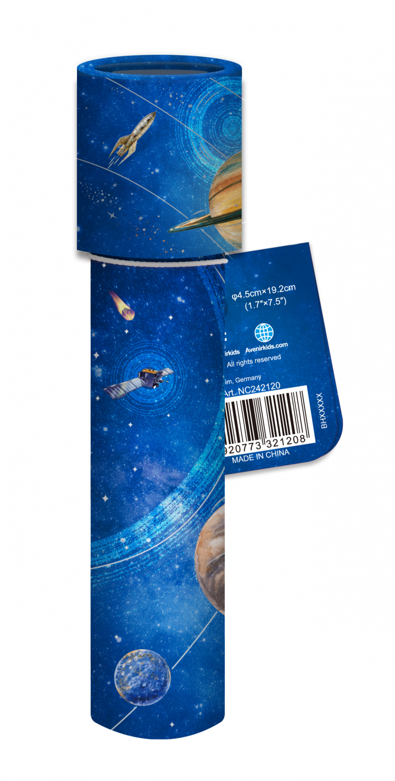 Caleidoscop Colectia Creatii Naturale - Spatiu Porneste intr-o calatorie interstelara cu acest caleidoscop decorat cu planete si stele! Fiecare intoarcere a tubului dezvaluie modele simetrice fascinante. Caracteristici principale: Design spatial cu planete si stele Modele care se schimba la fiecare intoarcere Experienta vizuala captivanta si creativa Recomandat copiilor de la 3 ani in sus. Materiale sigure si durabile.