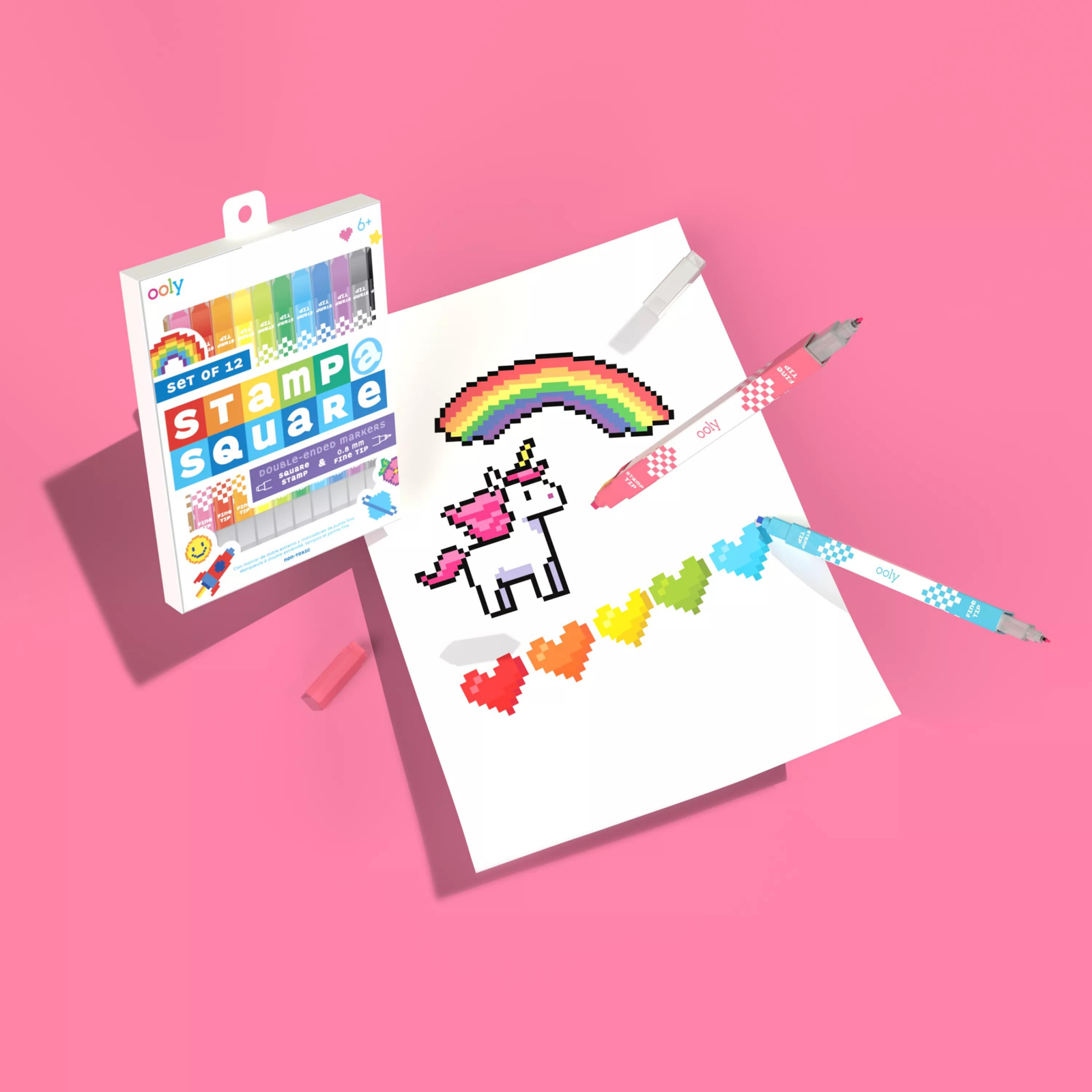 stampilati, scrieti, repetati Nimic nu este mai bun decat un marker care are doua functii, motiv pentru care suntem obsedati de functia doi in unu a acestor markeri pentru stampile. Un capat este conceput pentru a fi folosit ca marker de stampilat, in timp ce celalalt capat este destinat pentru scris sau desenat. Sunt perfecte pentru a le adauga la rechizitele scolare, pentru a desena in cartile de colorat sau pentru a crea propria arta pixel art. Cei care iau notite si cei care intocmesc liste vor adora modul in care capatul pentru stampilat ofera o modalitate usoara de a crea o lista de verificare sau de a face puncte in timp ce iau notite sau intocmesc liste. Oferiti aceasta combinatie de markere cu stampila artistului din viata dvs. sau pur si simplu faceti-va un cadou si adaugati-o la colectia dvs. de markere! Set de 12 combo de markere pentru stampile pentru artisti, studenti si nu numai Fiecare marker are un varf de stampila patrat si un varf fin (0,8 mm) Excelent pentru intocmirea listelor, arta pixelilor si multe altele Non-toxic Se recomanda supravegherea unui adult Acopera si protejeaza suprafetele de lucru Poate pata unele suprafete Potrivit pentru varste de la 6 ani in sus