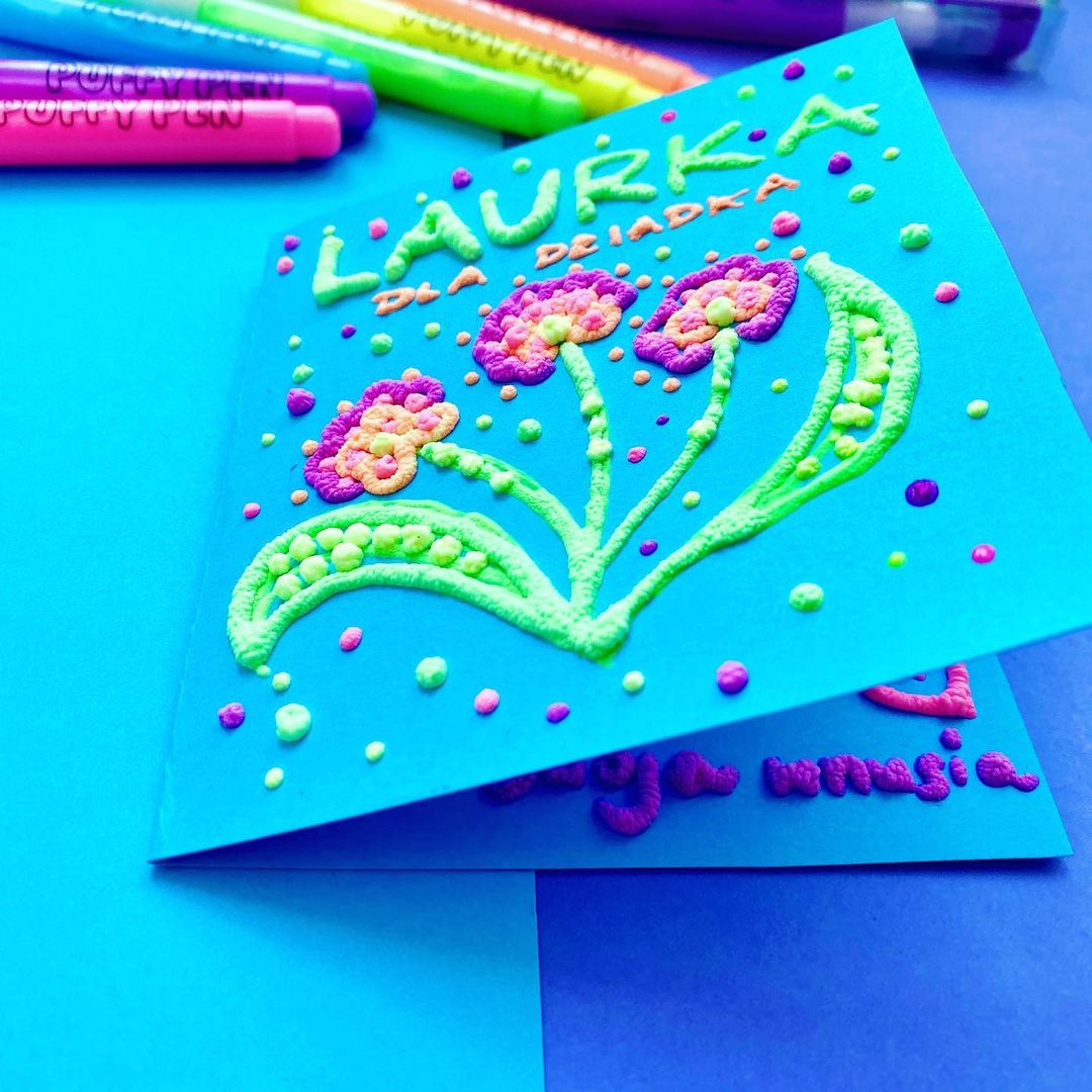 Desen, colorat, decorare uimitoare cu efect 3D magic! Un set de 6 pixuri cu pasla neon a caror cerneala se integreaza atunci cand este incalzita. Cand ati terminat de colorat, lasati cerneala sa se usuce bine. Apoi incalziti-l cu aerul fierbinte al uscatorului, tinandu-l foarte aproape de imagine, la cativa milimetri distanta (vopseaua are nevoie de aer foarte fierbinte pentru a se umfla bine). Timpul de gofrare depinde de cantitatea de cerneala aplicata, aproximativ 1 minut. Ce zici de efectul de , žpufos, atunci cand decorati felicitari, inregistrari in jurnal sau cand creati proiecte de arta unice? Interesat? Mai intai pictezi, desenezi sau decorezi cu culori pastelate si apoi folosesti un uscator de par. Da, doar pentru asta, pentru ca sub influenta aerului cald vor iesi in evidenta inscriptiile, desenele, modelele create cu pixuri. Efectul tridimensional spectaculos rezultat va adauga profunzime si caracter lucrarilor dumneavoastra. Sunt grozave pentru scoala, gradinita, joaca acasa si chiar pentru serviciu. 6 markere 6 culori neon ideal pentru proiecte de arta, decorare de felicitari, agende, inscriptii etc. este necesar un uscator de par pentru a obtine efectul 3D din cauza aerului fierbinte se recomanda folosirea uscatorului sub supravegherea unui adult varsta 3+ Sfaturi pentru a obtine cel mai bun efect: Strangeti varful de pasla pentru ca cerneala sa curga mai bine. Lasati cerneala sa se usuce bine (de preferinta lasati-o cateva ore) pentru a nu curge la uscare cu uscator. Uscati cu un uscator de par, aer cald, tinandu-l in unghi si foarte aproape, literalmente chiar in imagine, la cativa milimetri distanta, astfel incat uscatorul sa nu atinga vopseaua. , žVopseaua magica, are nevoie de aer foarte fierbinte pentru a se umfla. Creatia ta va fi prezentata in decurs de 1 minut. Timpul depinde de cantitatea de cerneala aplicata. O cantitate mare de cerneala va necesita mai multa caldura (timp de incalzire mai lung).
