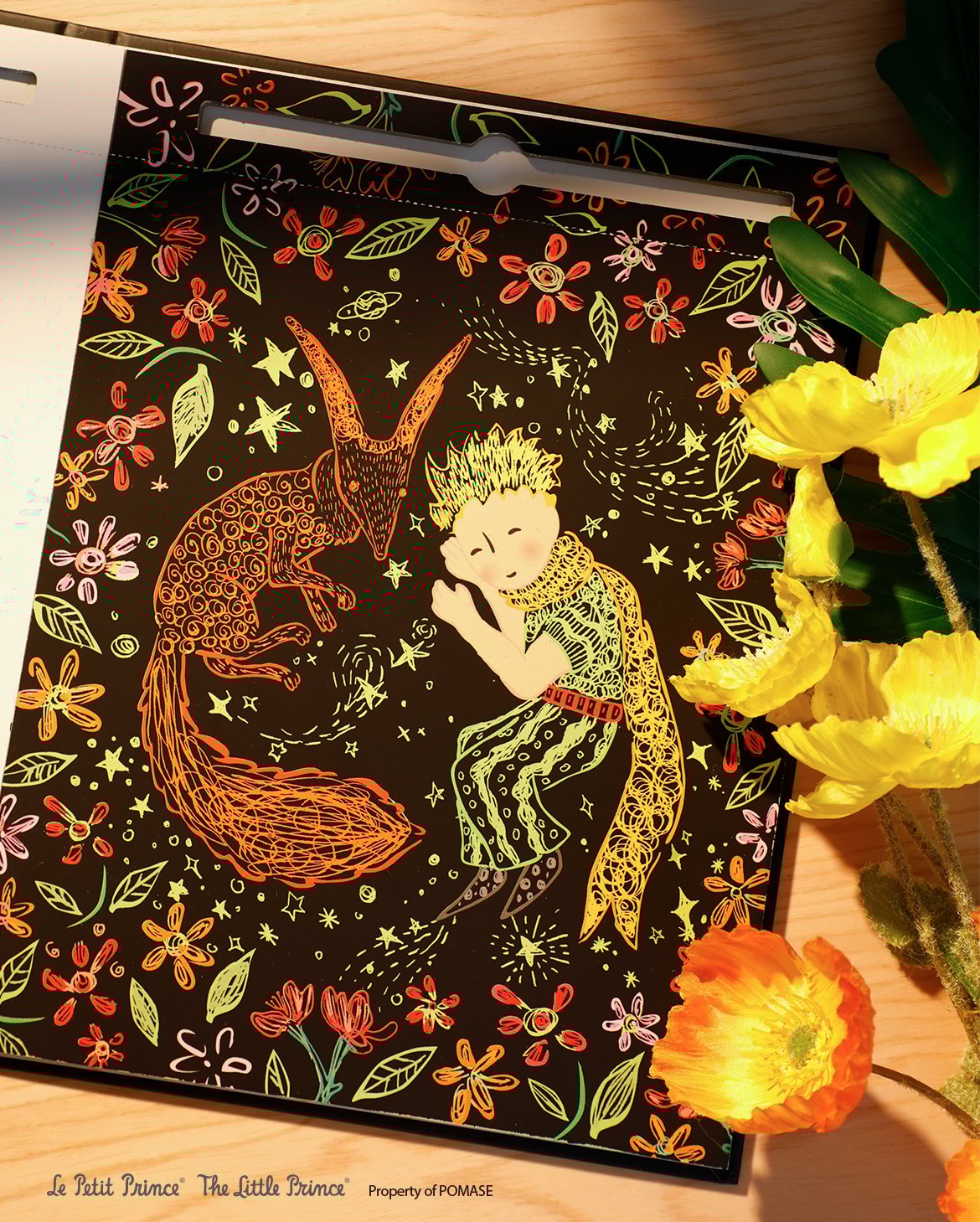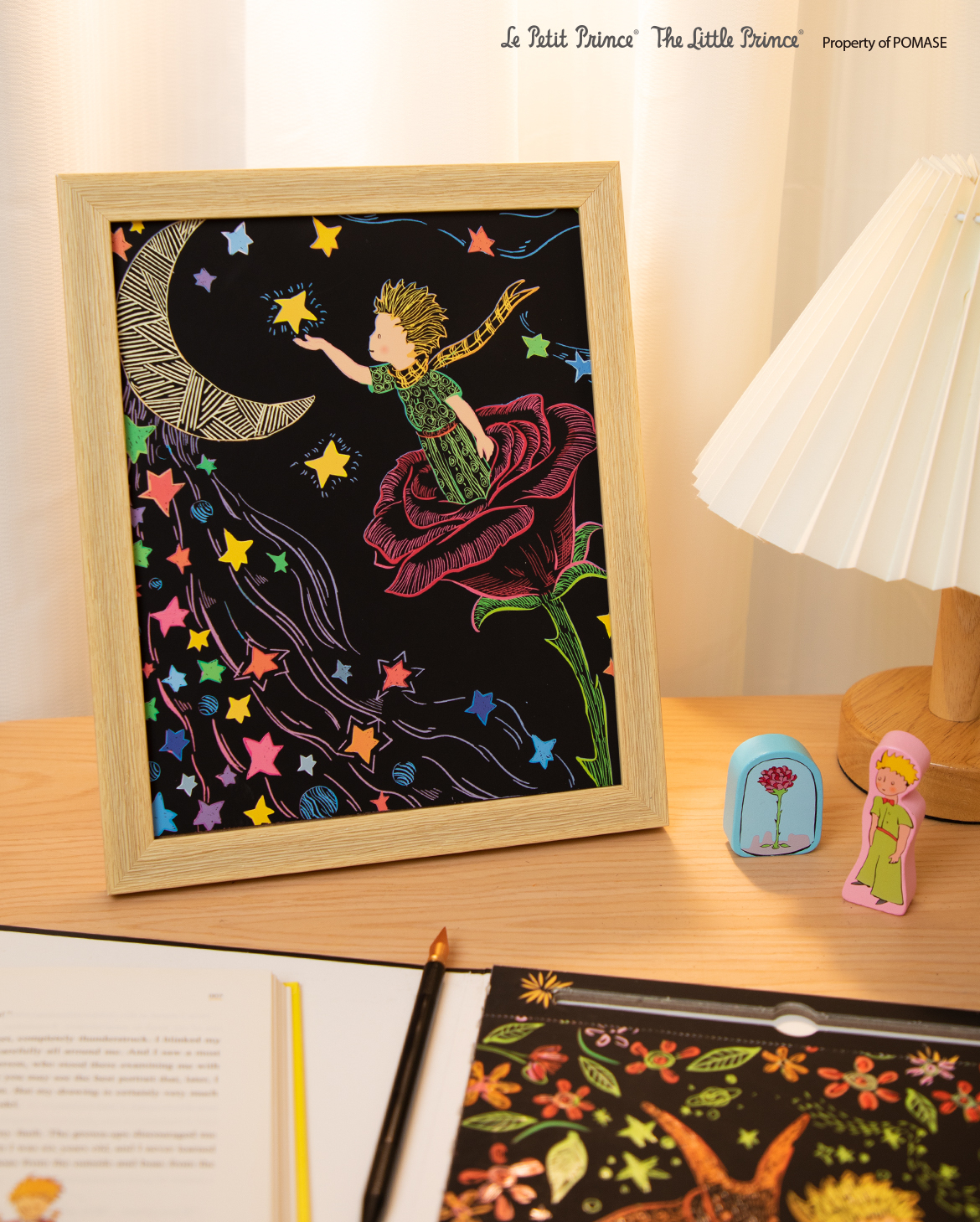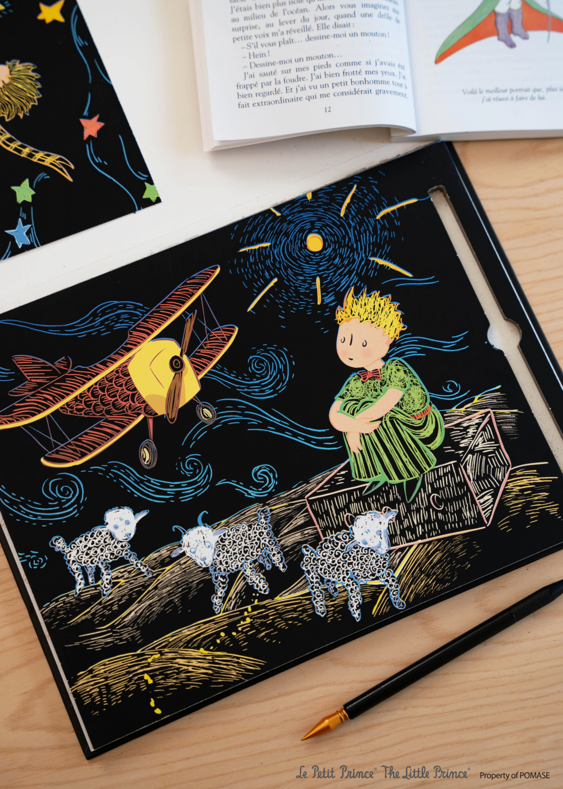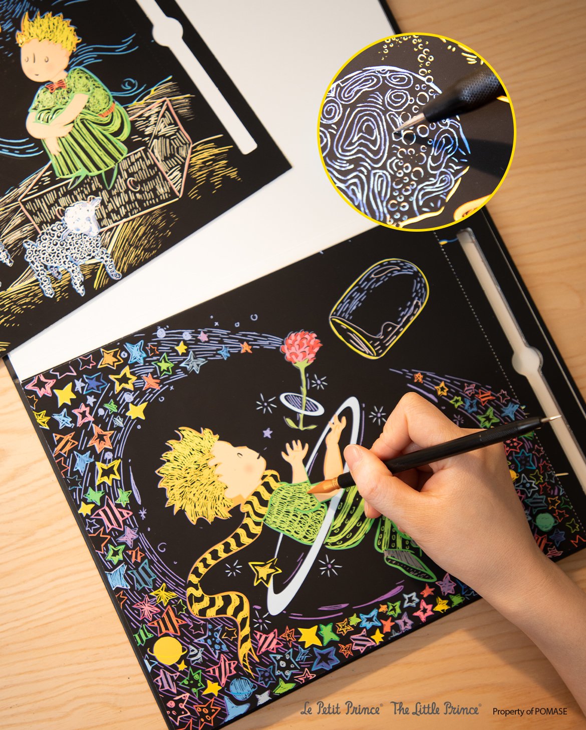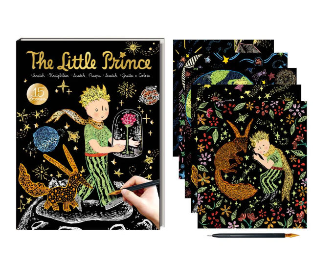 Carte de razuit - Micul Print Inspirata de povestea Micului Print, aceasta carte de razuit ofera o experienta magica de descoperire si colorat, dezvaluind universul ascuns sub suprafata. Caracteristici principale: 15 coli cu ilustratii frumoase din Micul Print Stylus metalic dublu fata pentru razuire precisa Fiecare foaie are linie de perforare Descopera prin razuire: Planete si constelatii sclipitoare Intelepciunea secreta a Vulpii Trandafiri care infloresc sub degetele tale Perfecta pentru stimularea creativitatii si imaginatiei. Recomandata copiilor de la 3 ani in sus.