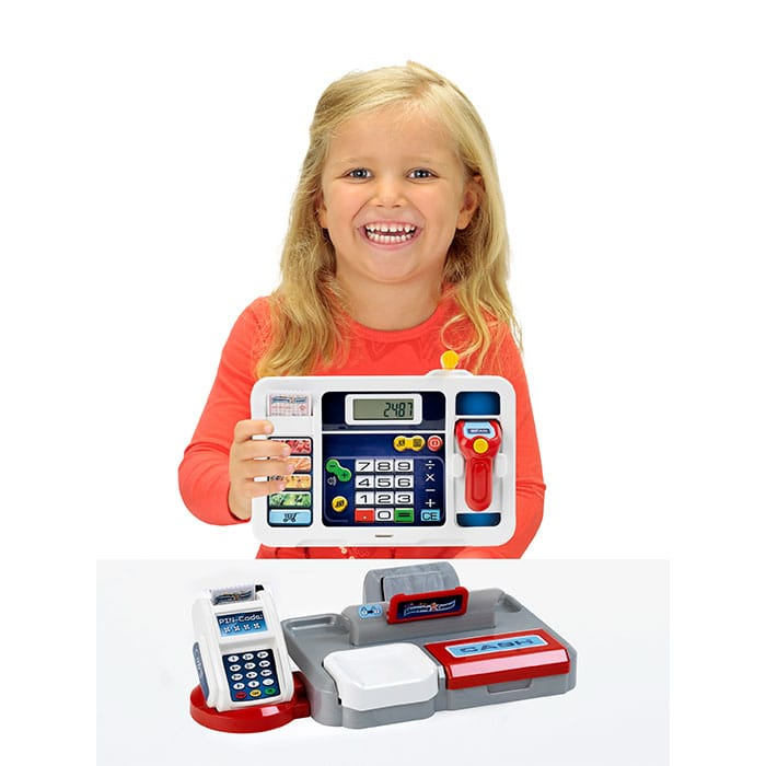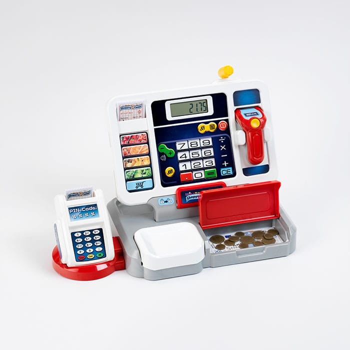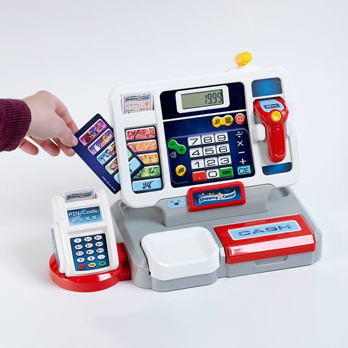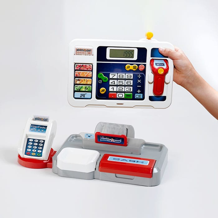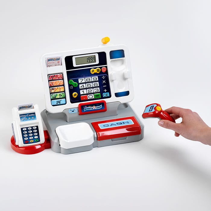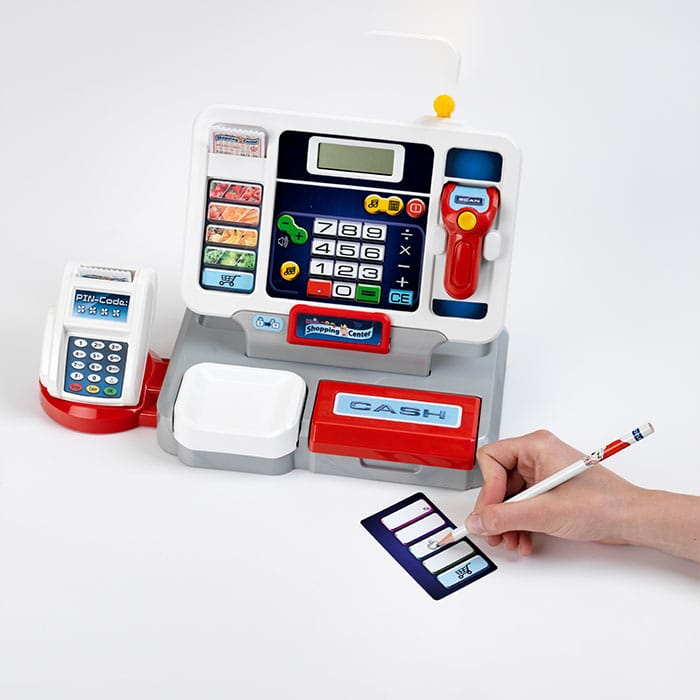 Casa de marcat Klein oferă o experiență de joacă captivantă și educativă pentru cei mici. Copiii pot cântări produsele și le pot scana, introducând prețurile pe tableta integrată, care le adună automat. Plata se poate face fie cu numerar, fie cu card, iar un semnal sonor anunță deschiderea compartimentului pentru bani, unde se pot organiza diversele bancnote și monede de jucărie incluse.