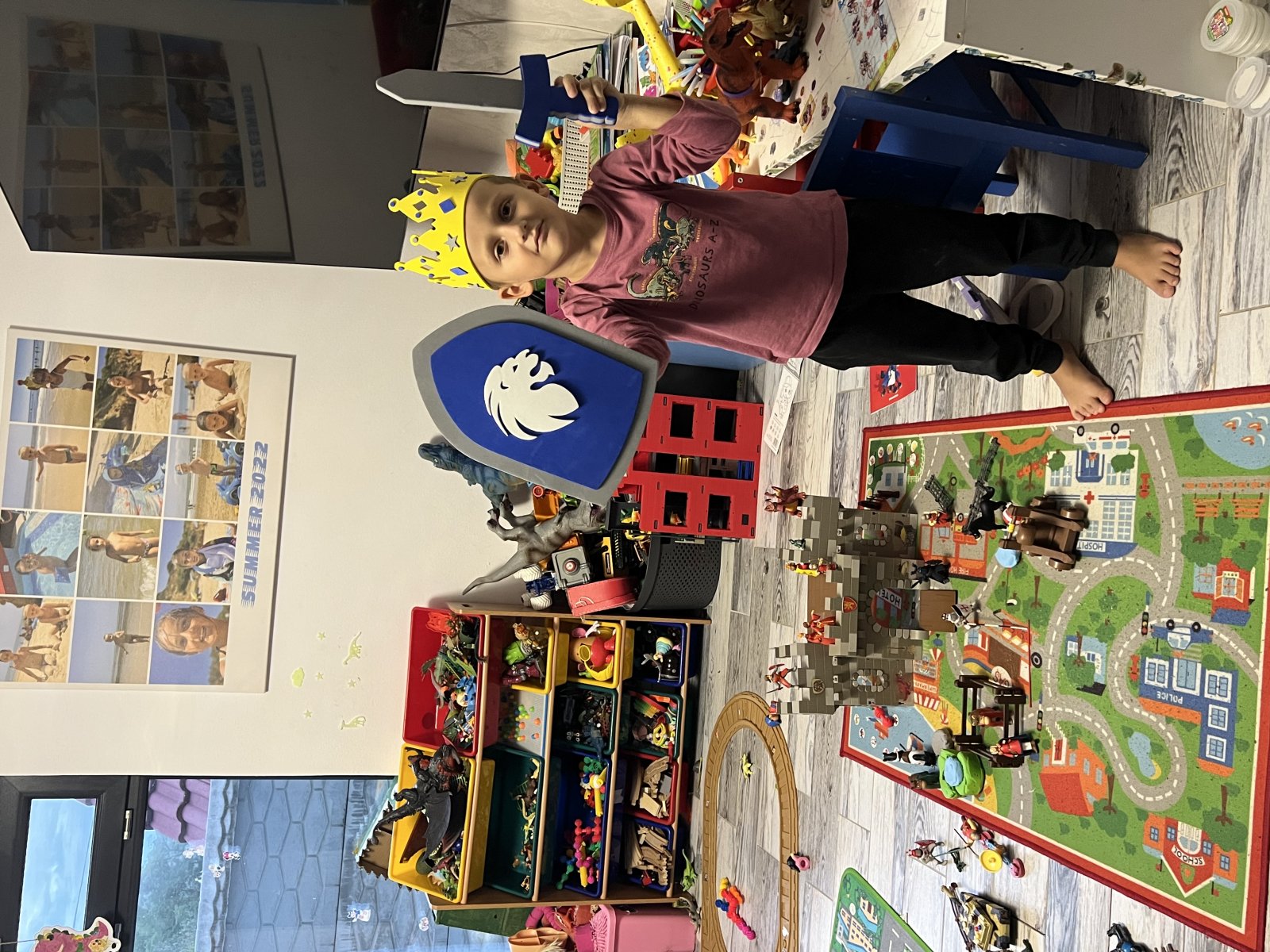 Cel mic este foarte incantat de castel , are tot cei trebuie unui castel rege Regina cavaleri dragon , cai,etc.plus costum , sabie , carti foarte multe chiar nu ma asteptam sa fie asa multe jucarii. Isi merita toti bani. Multumim