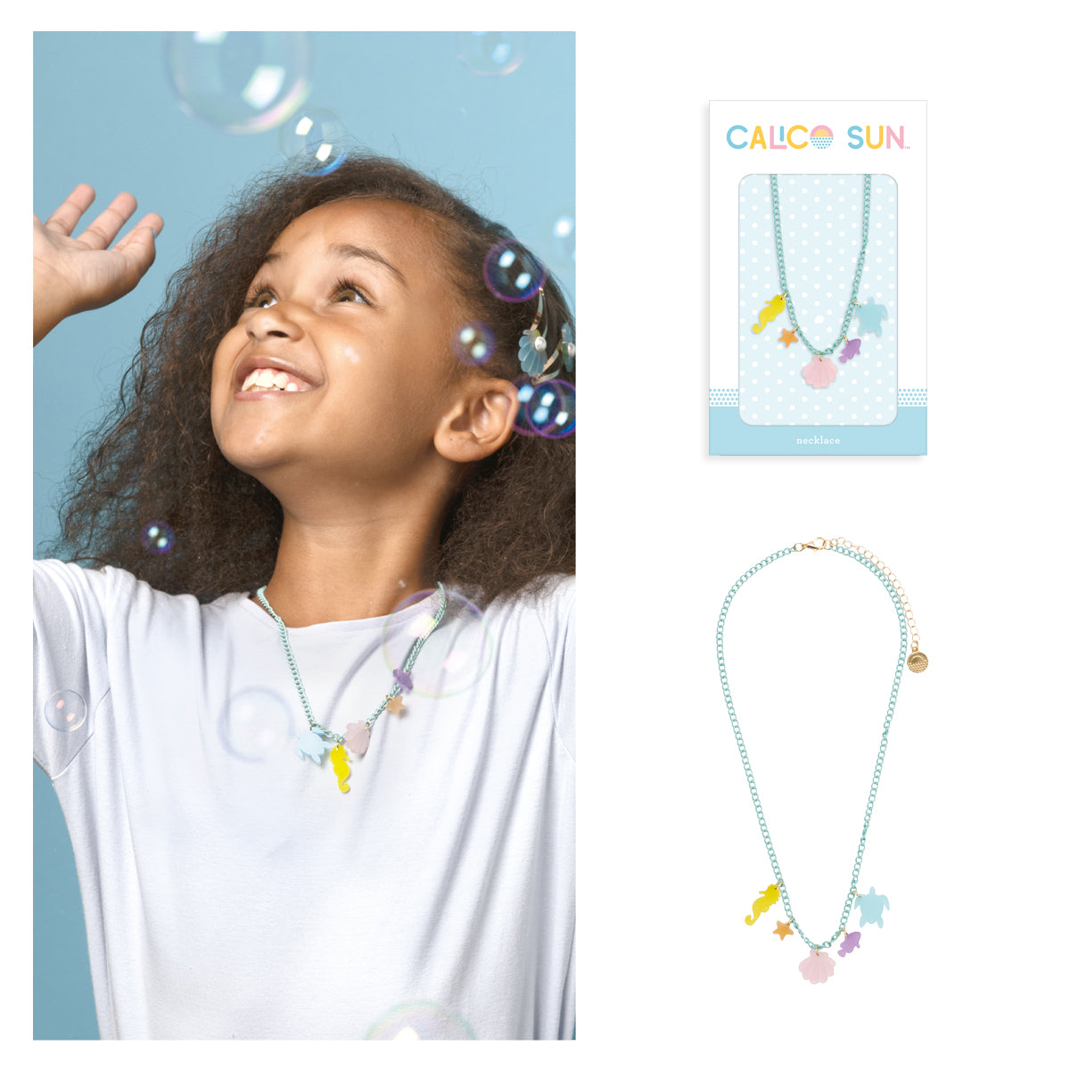 Inspirat de ocean, colierul Shelley Charm are 5 charmuri adorabile cu creaturi marine, in culori transparente de plaja, pentru a adauga un strop de cool oricarei tinute. , Colier Shelley - Submarin , Charmuri acrilice colorate transparente pe lant , Colierul are 5 charmuri in total , include caluti de mare, stele de mare, scoici, pesti si broaste testoasa de mare , Se potriveste de minune cu accesoriile Shelley coordonate , Colierul este reglabil 44cm- 51cm , Potrivit pentru varsta de 3 ani in sus Dimensiune cutie cm: 0.64 X 8.89 X 14.61 Greutate: 25 grame Nu este potrivit pentru copiii sub 3 ani din cauza pieselor mici. Pericol de sufocare.
