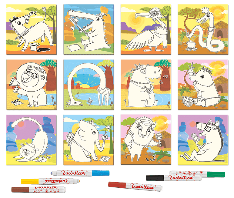 Fiecare ilustrație poate fi colorată folosind cariocile incluse, permițând copiilor să creeze modele care imită pielea animalelor sau să mâzgălească liber. Activitățile de colorat ajută la dezvoltarea abilităților de observare și recunoaștere a culorilor, încurajând totodată creativitatea.