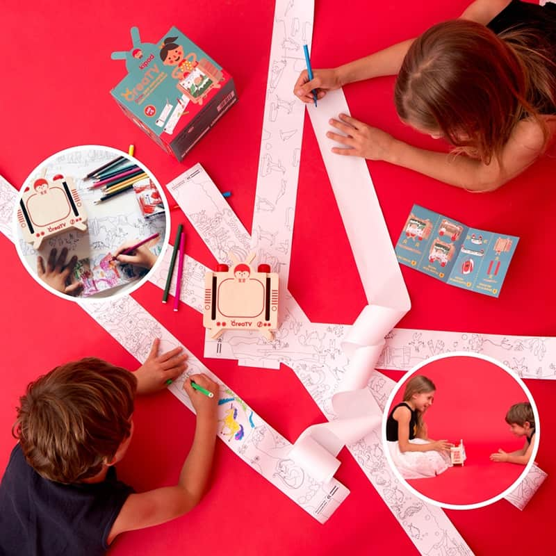 KC-101 CREA TV, SET PENTRU POVEsTI sI BENZI DESENATE Set creativ interactiv pentru exprimare narativa si artistica, sub forma de , žTV, din lemn. Continut: 1 TV din lemn, 5 role imprimate, 1 rola de hartie alba, 1 manual Materiale: lemn, hartie, vopsea non-toxica pe baza de apa Varsta recomandata: 5, 10 ani Avertisment: Nerecomandat sub 3 ani. Contine piese mici. Pericol de inec.