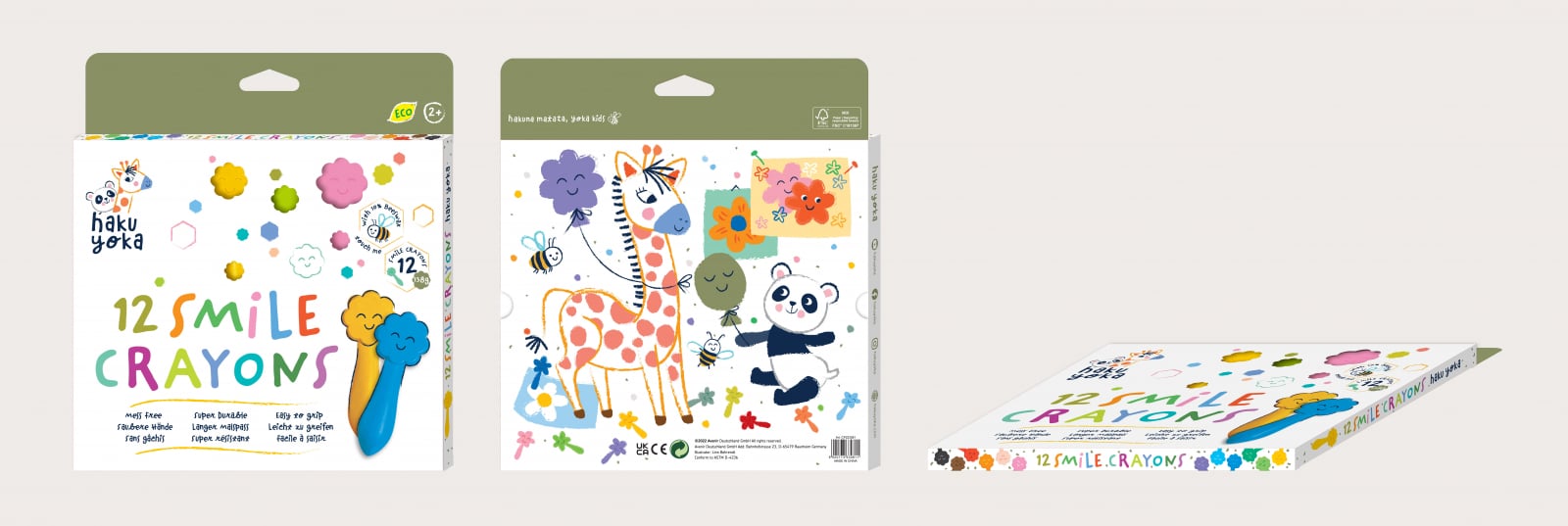 Creioanele Haku Yoka sunt foarte calitative, contin 10% ceara de albine si sunt usor de tinut in mana de catre copii. Toate creioanele cerate Haku Yoka au o durabilitate mare, nu lasa urme pe mainile sau hainele copiilor.In plus, sunt creioane fericite cu zambet, menite sa aduca veselie si o stare de bine. Haku Yoka este un brand german al companiei Avenir, de origine germana, cu produse eco-friendly. Nu contin plastic. Materialele de hartie si carton sunt certificate FSC. Creioanele contin ceara naturala de albine, parafina, pudra minerala de talc si pudra colorant organica. Creioanele cerate Haku Yoka sunt calitative si sigure pentru copii, sunt certificate EN71 si ASTM. Dimensiune cutie: 20.4X1.6X22.9cm