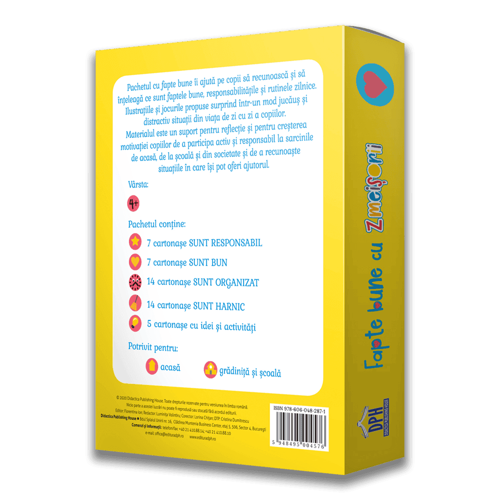 Pachetul "Fapte bune cu zmeisorii" este inspirat din educația finlandeză și oferă copiilor o modalitate captivantă de a învăța despre fapte bune, responsabilități și rutine zilnice. Conceput pentru copiii cu vârste de peste 4 ani, acest set de jetoane este ideal pentru a încuraja comportamente pozitive și pentru a dezvolta abilități esențiale.