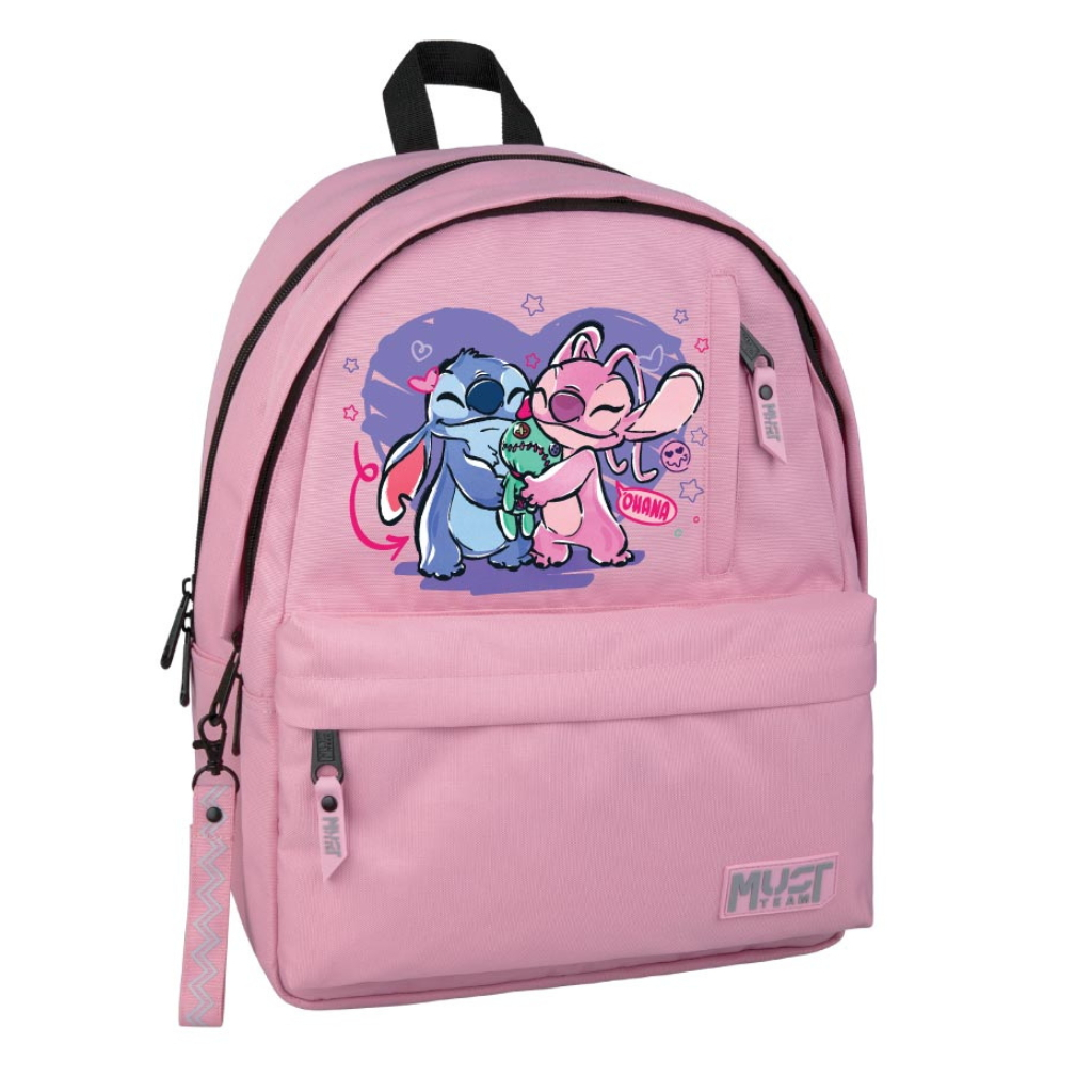 Ghiozdan Disney Stitch & Angel Must Team Roz cu Gri, cu 2 compartimente principale – rucsacul ideal pentru copii, adolescenți și adulți, potrivit pentru școală, facultate, serviciu sau plimbările de zi cu zi. Realizat din material rezistent, acest rucsac se remarcă prin confort, design modern și calitate superioară.