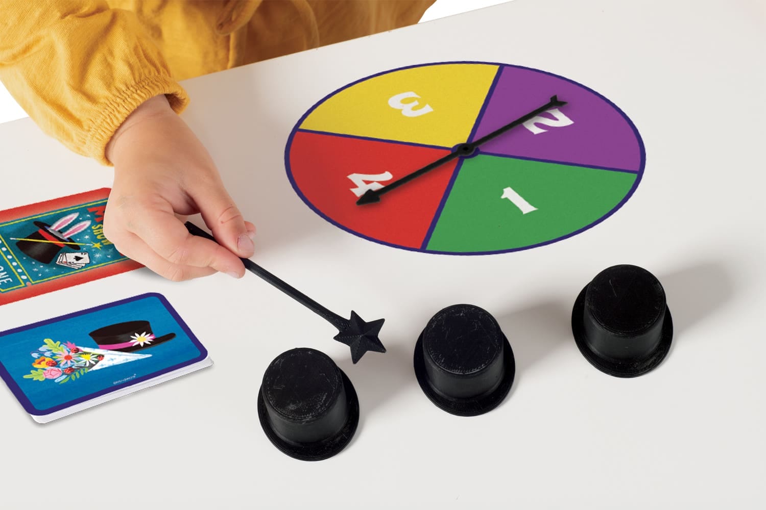 În acest joc captivant, iepurașii și-au pierdut biletele și au nevoie de ajutor pentru a le găsi înainte ca Magicianul Al Kazaam să termine de pregătit scena. Copiii vor trebui să gândească strategii împreună, să agite bagheta magică (inclusă), să învârtă ruleta și să efectueze trucuri magice pentru a-i ghida pe iepurași către locurile lor.