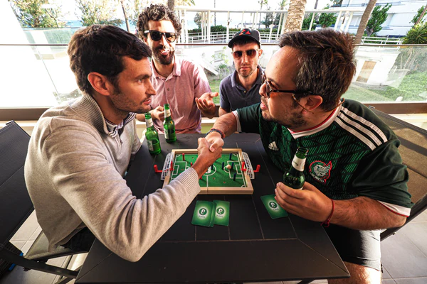 Ideal pentru jocuri rapide si tactici ingenioase! Mini Plakks este alegerea perfecta pentru fete si baieti, oferind distractie garantata pentru toata familia. Fie ca esti un mic strateg sau un mare fan al fotbalului, acest joc captivant transforma orice masa intr-un teren de fotbal. Caracteristici: Portabil si usor de montat , poti sa-l joci oriunde! Numar de jucatori : 2-4 Varsta recomandata : 5 , 99 ani Cum se joaca? Obiectivul: Scopul este sa marchezi in poarta adversarului, lovind mingea cu degetul. Ai o singura sansa pe tura, apoi este randul oponentului. Fii atent! Daca adversarul inscrie, vei pierde unul dintre cei 6 , žstalpi, de pe teren. Cand ramai fara stalpi, ai pierdut jocul! Functii speciale ,š½ Portar mobil: Muta-ti portarul pentru a apara poarta si pentru a aduce o doza de imprevizibilitate in fiecare meci! Carti cu puteri speciale: Adauga un plus de strategie cu carti unice, precum , ždublu gol, sau , žfara gol,, care schimba cursul jocului intr-o clipa! Modul Manager: Devino managerul echipei tale! Alege strategic cum sa distribui cei 6 stalpi pe teren pentru a-ti maximiza sansele de succes. Mini Plakks este cadoul perfect pentru cei care adora jocurile competitive si rapide, fie ca esti acasa sau in vacanta! Greutate : 0.73 kg Lungime : 25 cm Latime : 16 cm Inaltime : 2 cm Pentru instructiunile in limba romana dati click aici