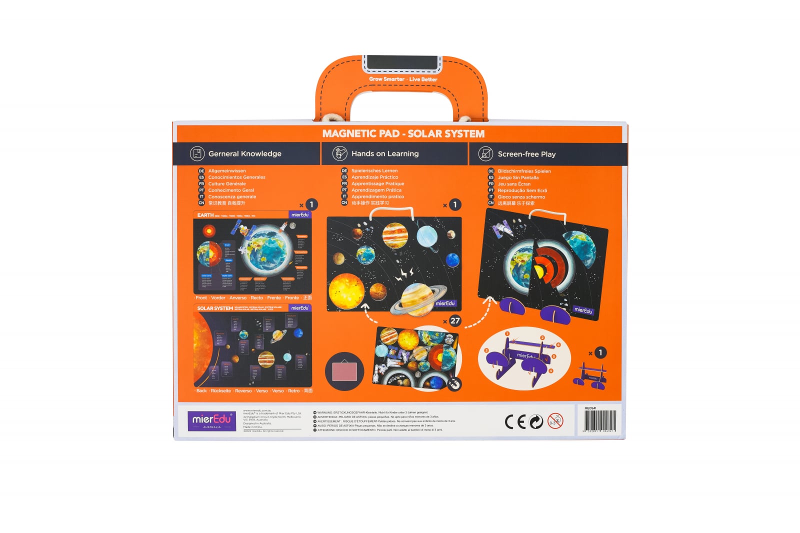 O modalitate excelenta pentru incepatori de a invata elementele de baza ale sistemului solar, inclusiv cunoasterea planetelor, pozitia planetelor in sistemul solar, anatomia Pamantului si explorarea umana a spatiului. M-Pad-ul nostru magnetic poate inlocui iPad-ul si ii poate tine pe copii departe de ecran. De asemenea, poate fi usor de agatat sau de asezat pe un suport, astfel incat este ideal pentru copii sa se joace peste tot. Varsta: 3+. Dimensiune: 35cm 1cm 24,5cm Contine: tabla magnetica, 30 piese de carton magnetic, 1 card, 1 suport