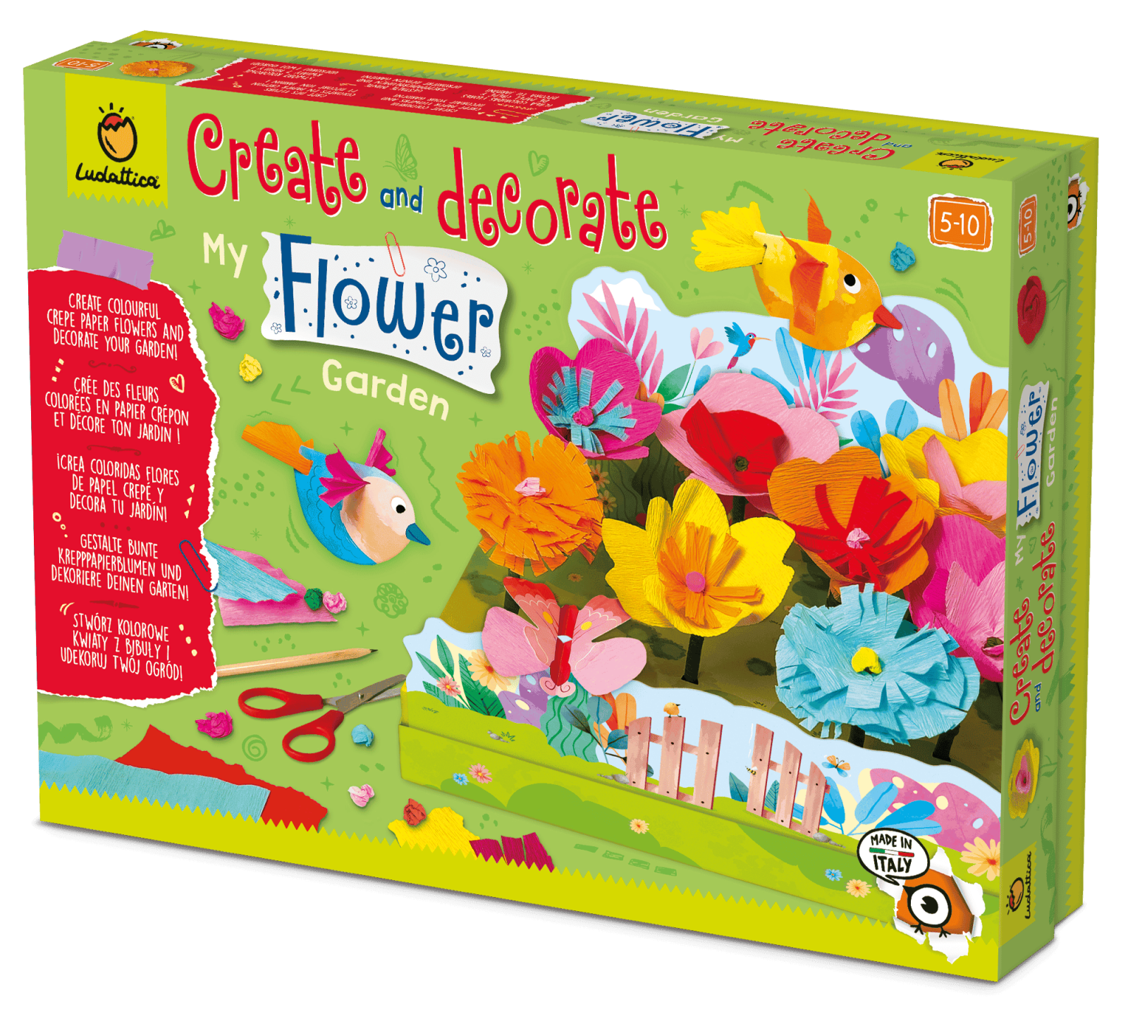 O grădină fermecată de construit și multe flori colorate de creat folosind hârtie creponată! În cutie veți găsi tot ce aveți nevoie, împreună cu instrucțiuni pas cu pas pentru a vă ghida nu doar în realizarea florilor frumoase din hârtie creponată, ci și în decorarea vibrantă pentru micii locuitori ai grădinii. În plus, un fundal din carton pentru a asambla și completa lumea voastră magică. Un joc care stimulează creativitatea, imaginația și abilitățile practice!