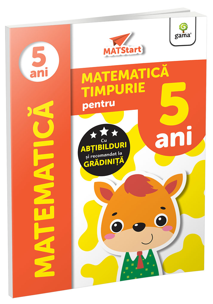 Matematică timpurie pentru 5 ani conține activități cu ajutorul cărora copilul va învăța să clasifice obiecte, să formeze perechi și să numere mulțimi de obiecte, unindu-le de numerele corespunzătoare. Va avea de rezolvat labirinturi, de unit puncte și de împărțit mulțimi de obiecte în grupuri de câte 10. De asemenea, va compara mulțimi de obiecte și va învăța semnele de relație, își va dezvolta gândirea spațială și va face operații simple de adunare și scădere, cu suport vizual, dar și măsurători simple și operații cu bani etc. Cele 72 de abțibilduri îl vor captiva și vor face ca procesul de învățare să fie unul plăcut, dezvoltându-i, totodată, coordonarea mână-ochi și motricitatea fină.