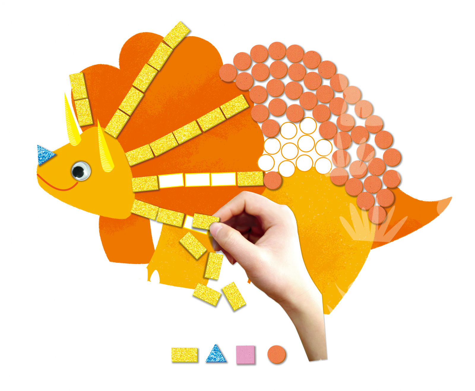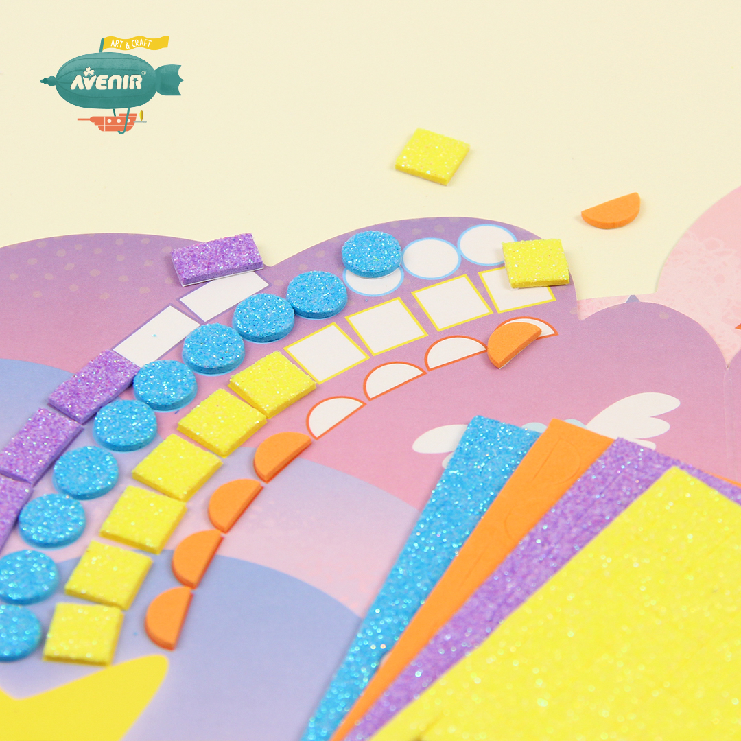Copiilor le va placea sa-si creeze propria carte de povesti cu autocolante mari din spuma, care faciliteaza realizarea unei opere de arta grozave. Pur si simplu dezlipiti folia de pe spate si potriviti culorile si formele. Este usor sa obtii o mare opera de arta! Mozaic distractie pentru copii cu peste 600 de autocolante din spuma. Perfect pentru dezvoltarea imaginatiei si a dexteritatii manuale a copiilor. Potrivit pentru copiii cu varsta peste 3 ani. Gama Avenir craft este o introducere timpurie in procesarea logica a proiectelor in mai multi pasi. Gama include truse de artizanat luminoase si indraznete care stimuleaza creativitatea unui copil in timp ce se distreaza si experimenteaza placerea mestesugurilor. Copiii stralucesc de un sentiment de realizare si de stima de sine in timp ce isi demonstreaza realizarile. Mestesugurile practice nu numai ca invata modele matematice, proportie si simetrie, ci sunt si un mare impuls pentru stima de sine. Dimensiuni 23 x 23 x 0.6 cm Contine: 2 carduri cartonate; 4 foi cu autocolante din spuma; 6 ochi; 1 sfoara Dimensiuni cutie: 23 23 0.6 cm