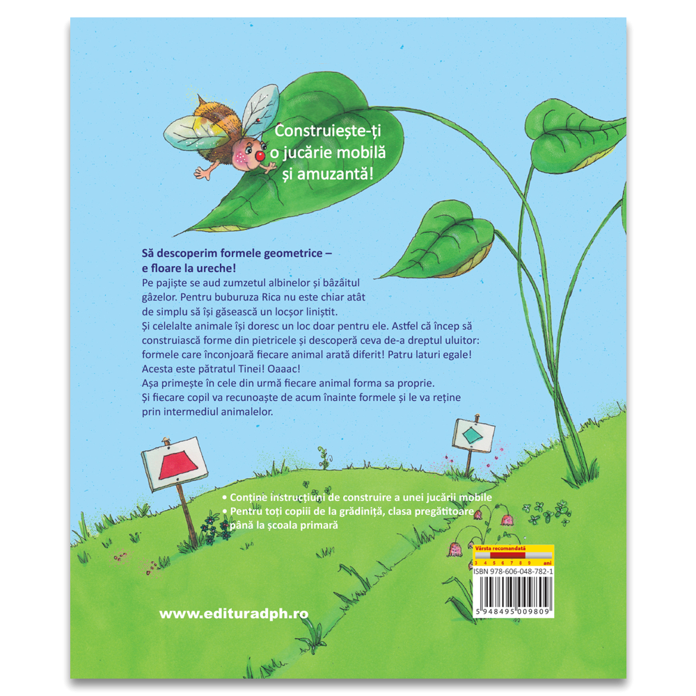 Cartea încurajează copiii să își dezvolte creativitatea și să participe activ la învățarea formelor prin activități manuale, cum ar fi crearea de jucării mobile din hârtie și alte materiale.