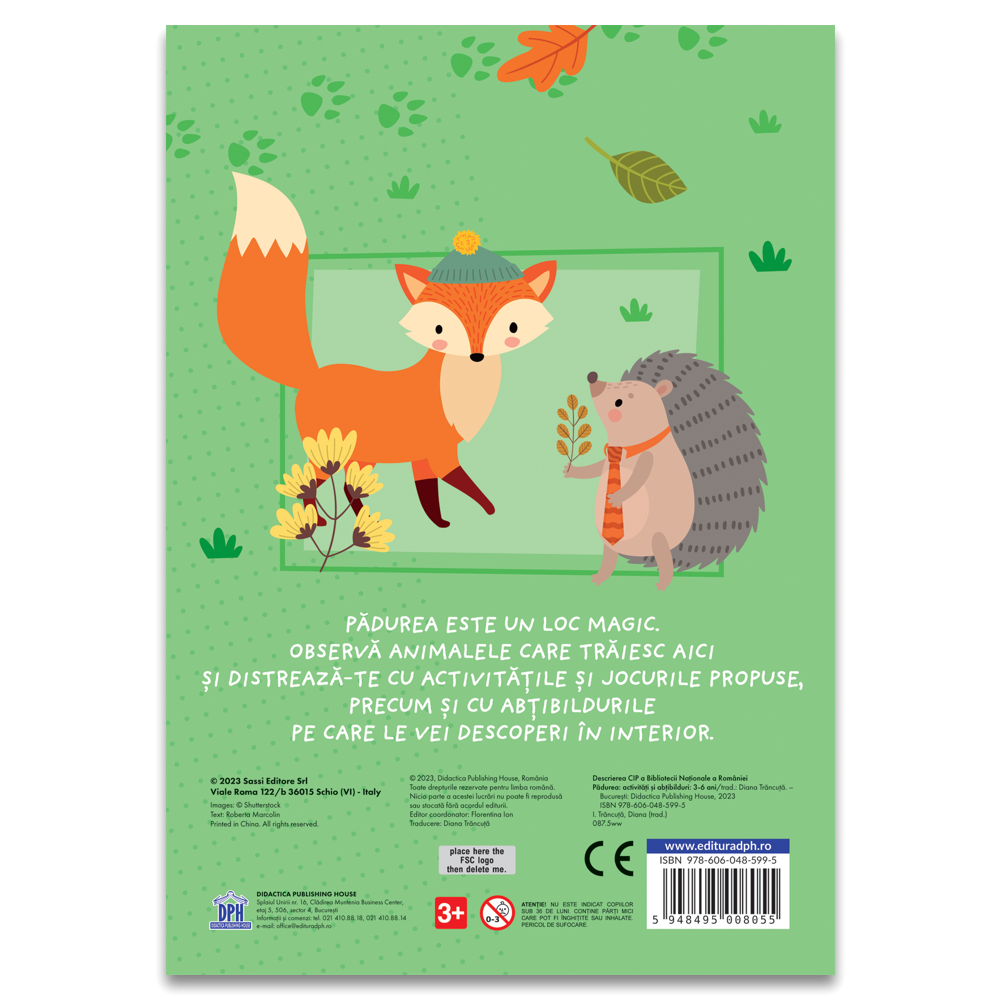 Cartea "Pădurea - Activități și Abțibilduri" oferă o experiență educativă și distractivă pentru copii. Pe paginile acestei cărți, cei mici vor învăța despre animalele din pădure prin activități interactive și jocuri captivante. De asemenea, vor găsi abțibilduri colorate care îi vor ajuta să își dezvolte creativitatea și să își îmbogățească cunoștințele despre natură.