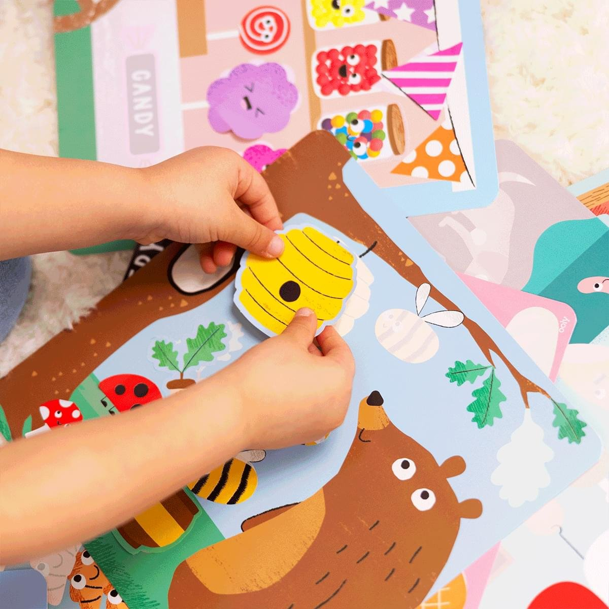 Acest set de activitati pentru scena cu autocolante va atrage copiii de pretutindeni - de la cei care iubesc autocolantele, la cei care traiesc in imaginatia lor, la cei care iubesc sa creeze lucruri! Include 12 carduri cu tematica forestiera cu zone fantoma unde ar trebui sa fie plasate autocolantele rezistente, usor de decojit. In cel mai scurt timp, copilul tau isi va finaliza cu bucurie scena! , Set de scene de autocolante , Setul include 12 scene in padure si peste 100 de autocolante , Scenele includ zone fantoma care indica unde ar trebui sa mearga autocolantele , Autocolantele sunt destinate utilizarii o singura data , Nu sunt repozitionabile , 25 x 23 cm , Potrivite pentru varste de peste 3 ani