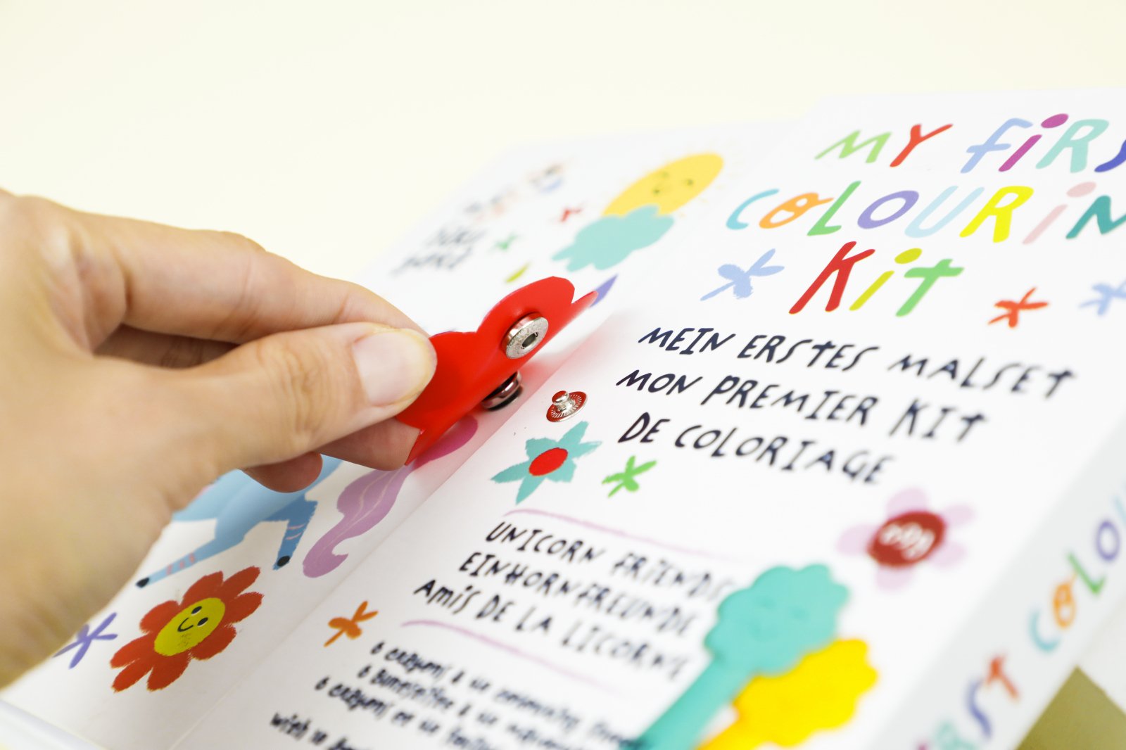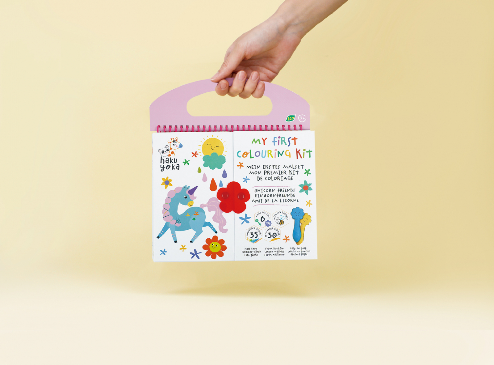 Primul meu kit de desenat este mai mult decat atat. Un set portabil care poate fi luat oriunde, contine un bloc de desen spiralat cu 35 de foi de desen tematice si cu perforatii pentru usoara desprindere a desenului. Mai contine 6 creioane cerate cu zambete si 30 de stickere ce pot fi folosite pentru a completa creatiile artistice ale micutilor. Cele 6 creioane cerate incluse sunt foarte calitative, contin 10% ceara de albine si sunt usor de tinut in mana de catre copii. Ca toate creioanele cerate Haku Yoka, au o durabilitate mare, nu lasa urme pe mainile sau hainele copiilor. In plus, sunt creioane fericite cu zambet, menite sa aduca veselie si o stare de bine. Haku Yoka este un brand german al companiei Avenir, de origine germana, cu produse eco-friendly. Nu contin plastic. Materialele de hartie si carton sunt certificate FSC. Creioanele contin ceara naturala de albine, parafina, pudra minerala de talc si pudra colorant organica. Creioanele cerate Haku Yoka sunt calitative si sigure pentru copii, sunt certificate EN71 si ASTM. Dimensiune cutie: 20.5X24X2cm