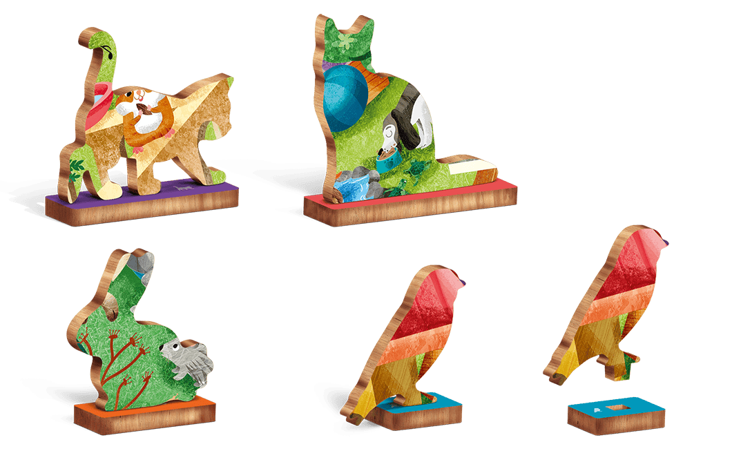 Un puzzle de lemn fascinant, perfect pentru copiii de peste 5 ani, care aduce la viață lumea adorabilă a animalelor de companie. Modelat sub forma unei pisici simpatice, acest puzzle este plasat într-o grădină plină de culori vibrante, oferind o experiență de joc captivantă și educativă.