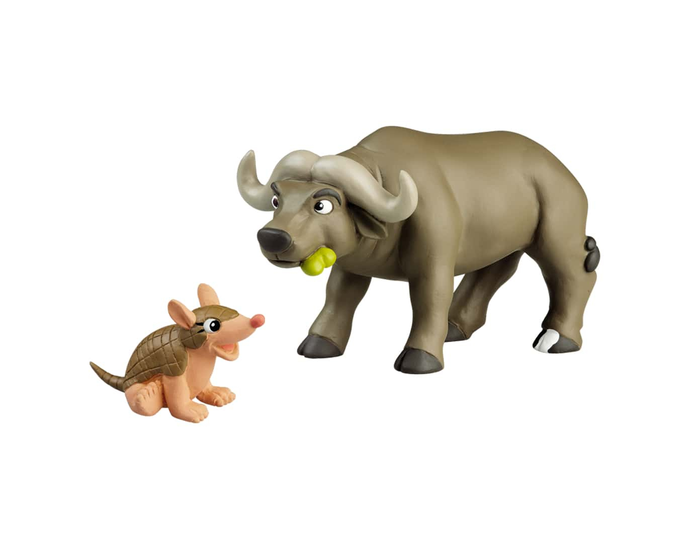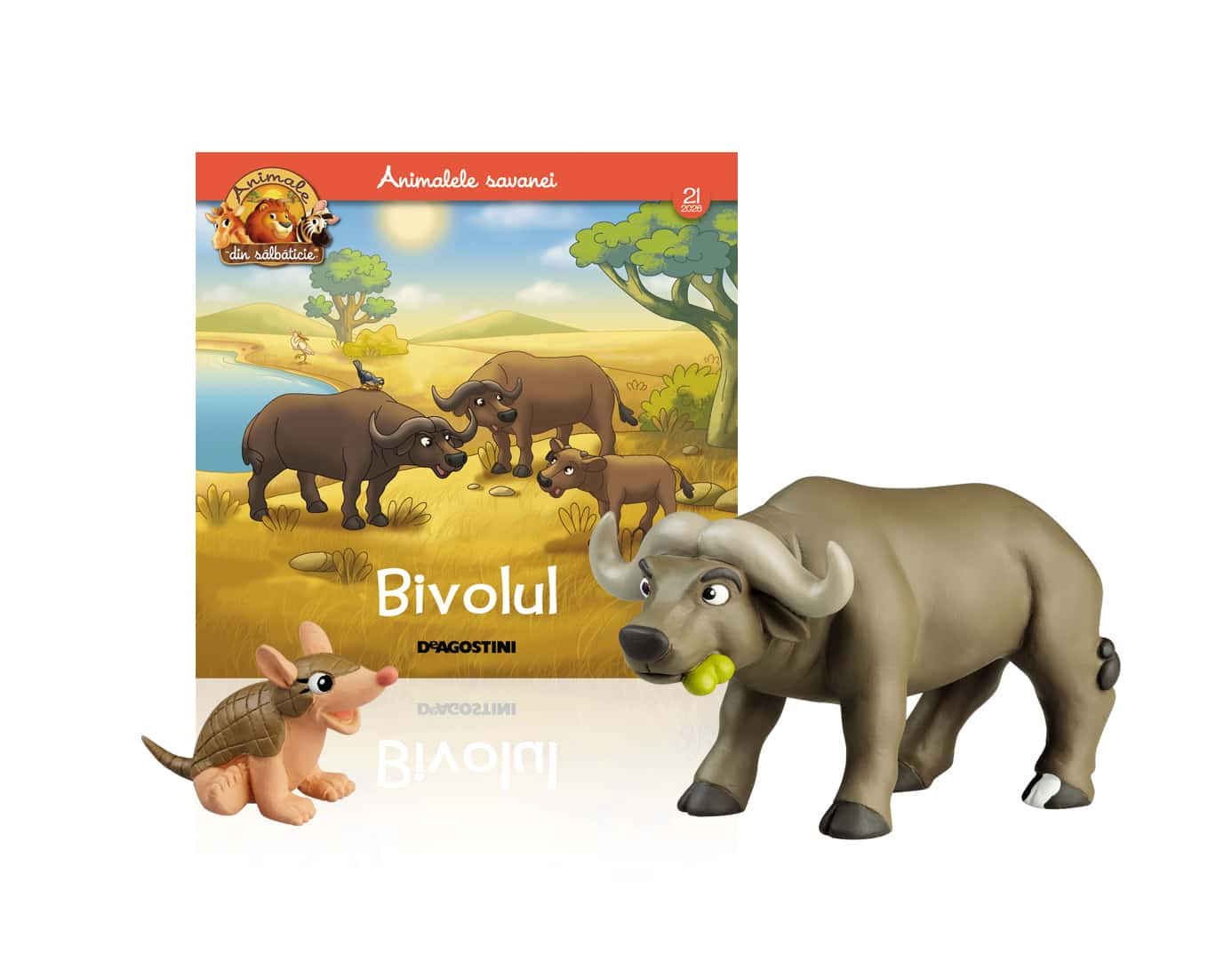 Pachetul include două figurine detaliate — Bivolul tată și pui de tatu — utile pentru scenarii imaginative, mini-diorame și joc de rol. Jocurile propuse antrenează limbajul, atenția și creativitatea, invitând copiii să refacă traseul turmei către bălți, să înțeleagă prădătorii și mecanismele de apărare sau să inventeze povești despre vizuinile tatuului.