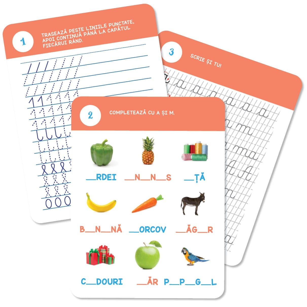 Fișele de lucru Scrierea • pentru clasa pregătitoare sunt concepute pentru a facilita învățarea scrierii la cei mici printr-o serie de activități captivante și educative. Aceste fișe includ: