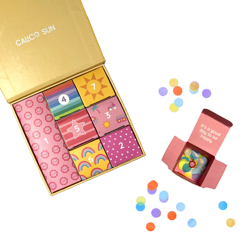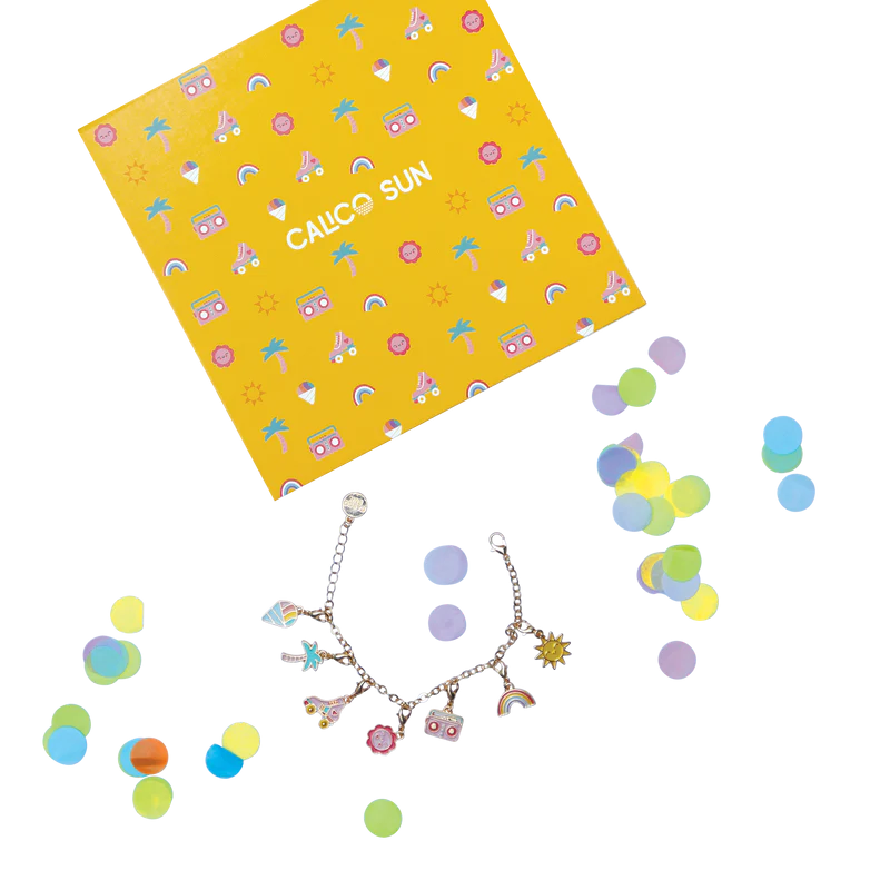 O vibratie buna curge in timp ce copilul tau cool numara inapoi pana la ziua lor speciala cu acest calendar de advent cu bratara cu charmuri. Surprindeti-va iubitica zi dupa zi, cand deschid fiecare charm cool, cum ar fi soarele, conurile de zapada, palmierii, patinele si curcubeele. Pe masura ce isi construiesc bratara, vor patina mai aproape de ziua lor cea mare. , Acest fermecator calendar de advent contine: , 1 bratara email aurie gata pentru charmuri , 7 charmuri ambalate individual, facute pentru zilele insorite , Charm-urile includ modele placute precum soarele, patine cu rotile, curcubee si multe altele , 1 cutie de amintire cu un mesaj pozitiv care mentine vibratiile bune , Potrivit pentru varsta de 3 ani in sus Dimensiune cutie cm: 5.34 X 15.24 X 15.24 Greutate: 113 grame Nu este potrivit pentru copiii sub 3 ani din cauza pieselor mici. Pericol de sufocare.
