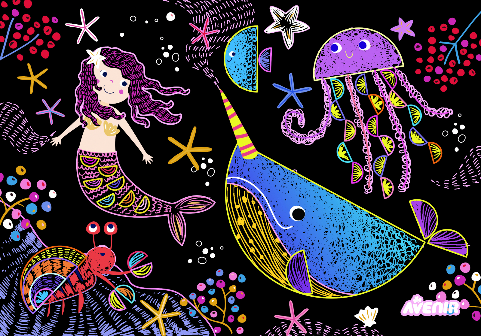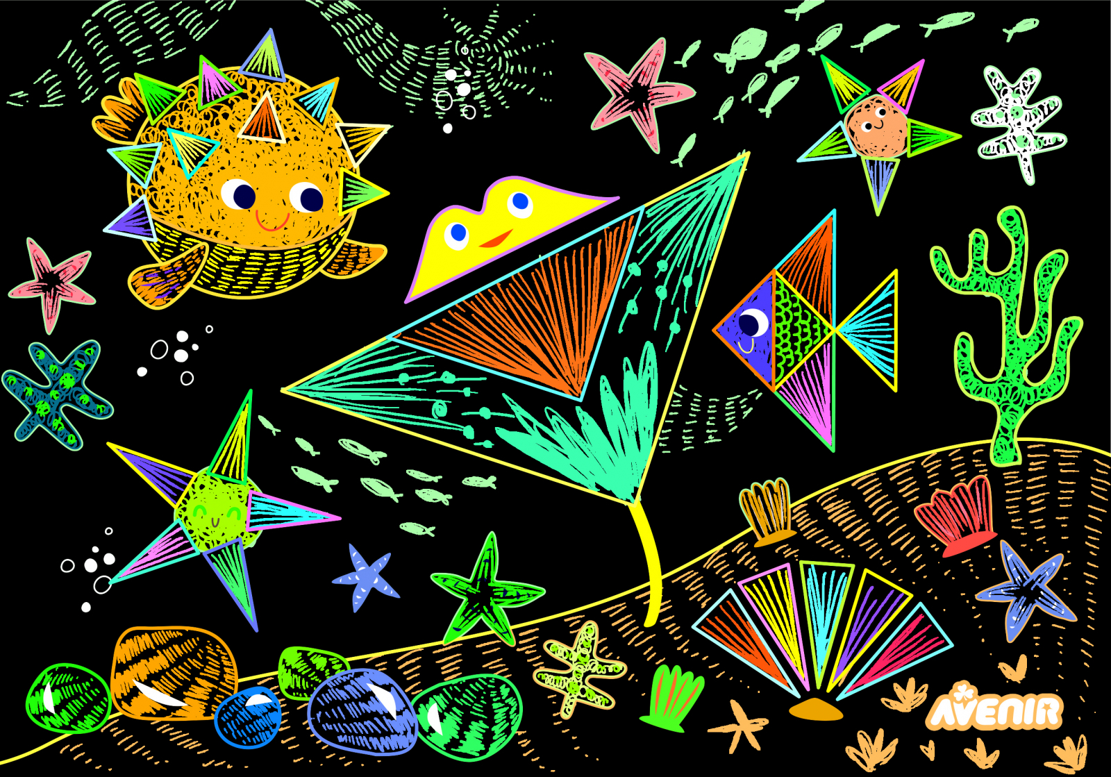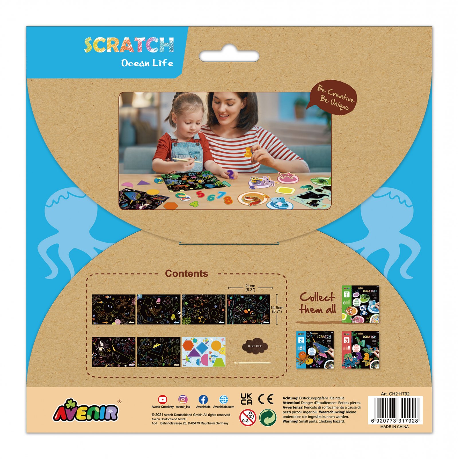 Setul de razuit uimitor de viu colorat de la Avenir ii va distra pe cei mici. Razuieste hartia neagra speciala pentru a colora diversi locuitori ai marii. Ajutati la promovarea recunoasterii si numararii cu numerele colorate incluse. Varsta recomandata 5 ani+ Dimensiune: 23 x 23 x 1 cm Linia de seturi razuibile de la Avenir este indeosebi apreciata pentru ilustratiile sale fantastice. De asemenea, parintii pot alege cu usurinta dintr-o gama foarte variata atat pe tematici dar si pe varste, existand seturi potrivite atat pentru varste mici (3 ani+) cat si pentru varste mai mari ( 5 ani, 7 ani), dar astfel ocazia fiecarui copil sa isi exprime creativitatea in functie de abilitati sale. Contine: 6 cartonase de razuit; 1 cartonas; 1 pasla; 1 instrument de razuit