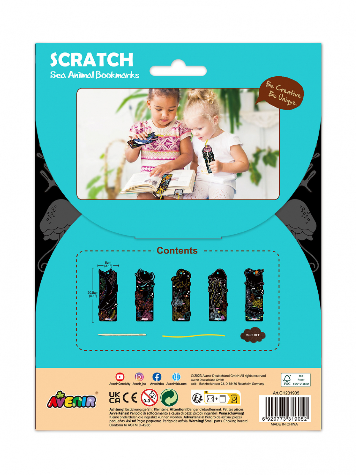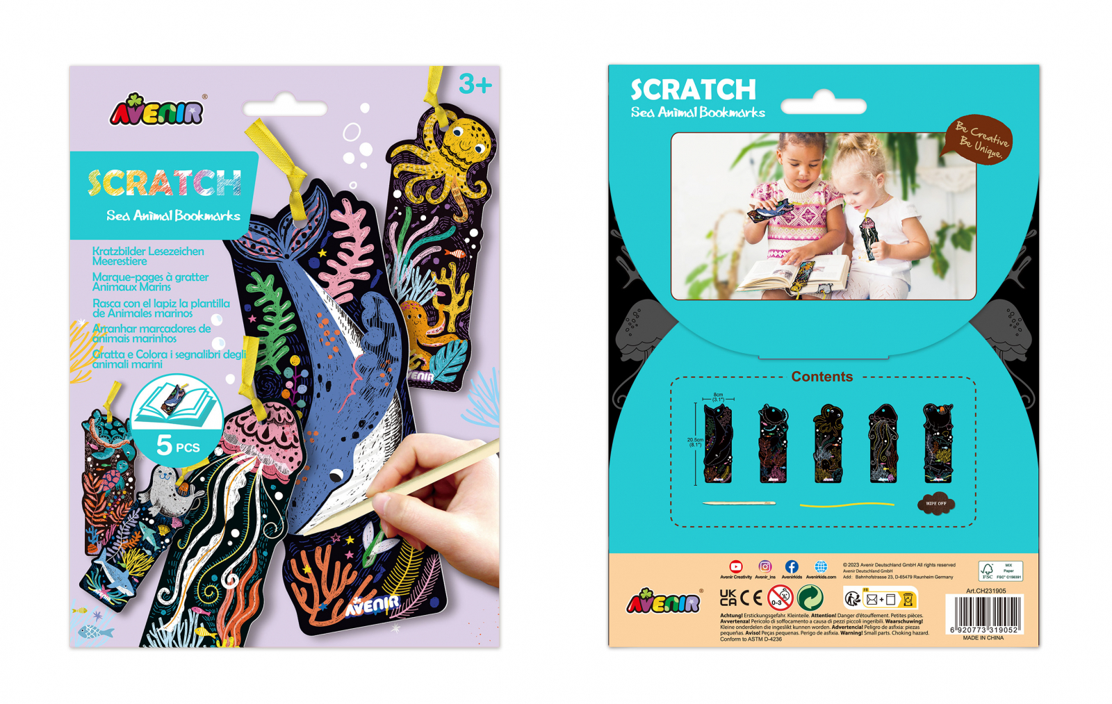 Descopera Semnele de Carte de razuit Avenir - un set complet ce incanta cu 5 semne de carte in forme variate si o eticheta cu panglica pentru un plus de eleganta. Creativitatea prinde viata cand copiii le combina pentru a crea semne individuale, pe care sa le pastreze cu drag si sa le impartaseasca cu cei dragi. E distractiv, e functional si e perfect pentru orice ocazie! Setul include: 5 semne de carte pentru razuit, 1 stilou de razuit, 1 banda, si un servetel de curatare in forma de nor. Lasa-ti imaginatia sa zboare si foloseste-l oriunde te poarta gandurile tale! Varsta recomandata 3 ani+ Dimensiune: 23 x 17 x 0.2 cm
