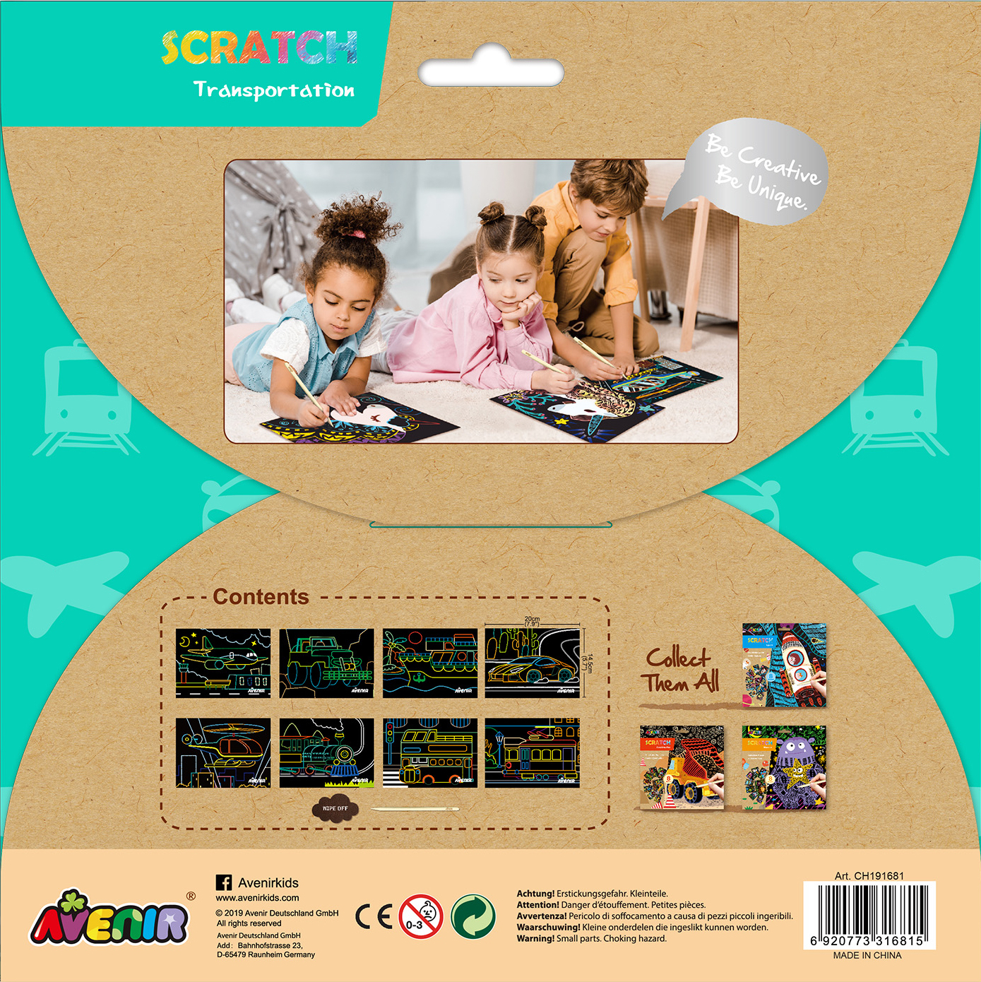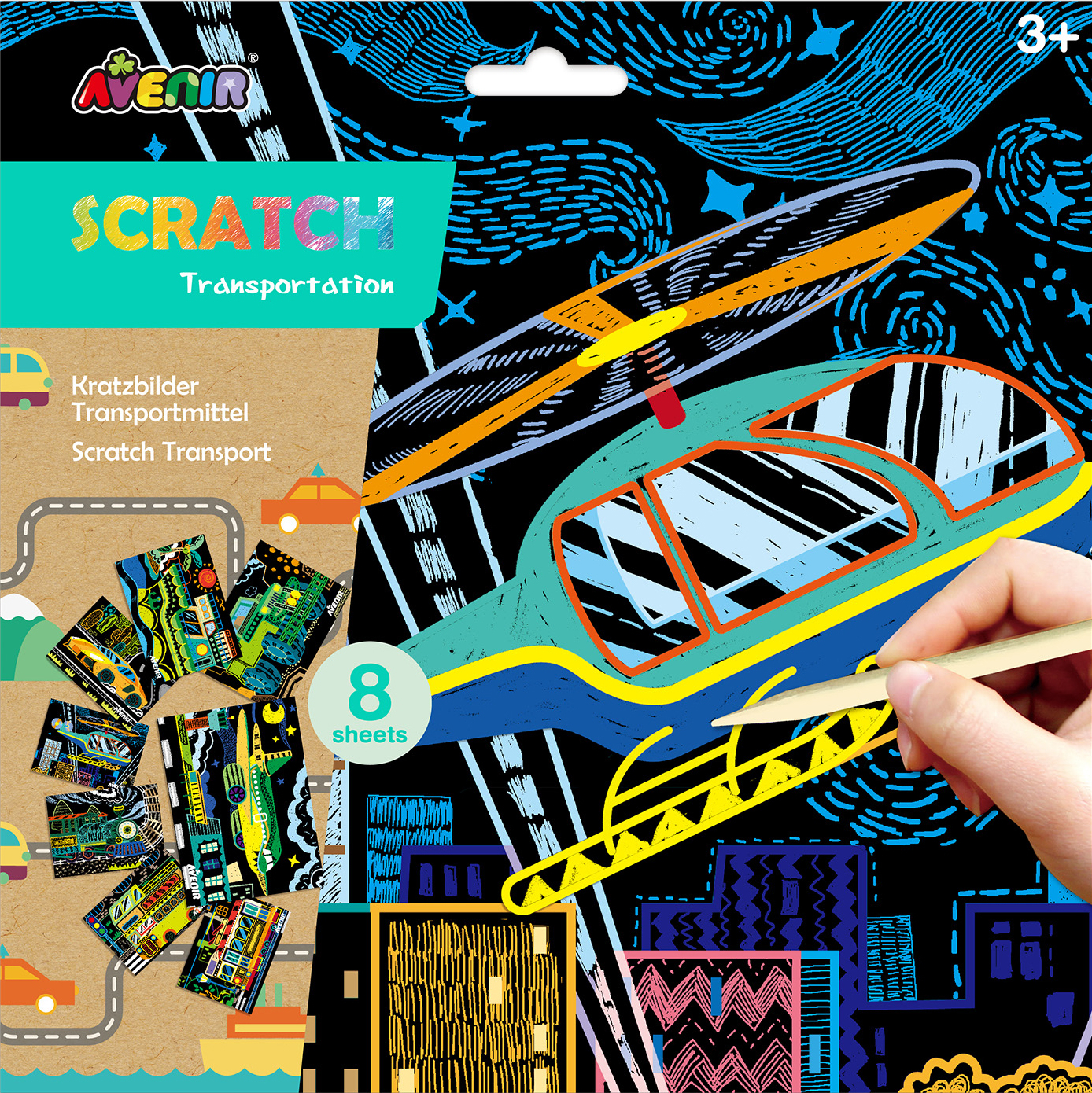 Setul de razuit uimitor de viu colorat de la Avenir ii va distra pe cei mici. Razuieste hartia neagra speciala pentru a colora scene cu masini si vehicule transport. Varsta recomandata 3 ani+ Dimensiune: 23 x 23 x 1 cm Linia de seturi razuibile de la Avenir este indeosebi apreciata pentru ilustratiile sale fantastice. De asemenea, parintii pot alege cu usurinta dintr-o gama foarte variata atat pe tematici dar si pe varste, existand seturi potrivite atat pentru varste mici (3 ani+) cat si pentru varste mai mari ( 5 ani, 7 ani), dar astfel ocazia fiecarui copil sa isi exprime creativitatea in functie de abilitati sale. Contine: 8 cartonase de razuit ; 1 instrument de razuit