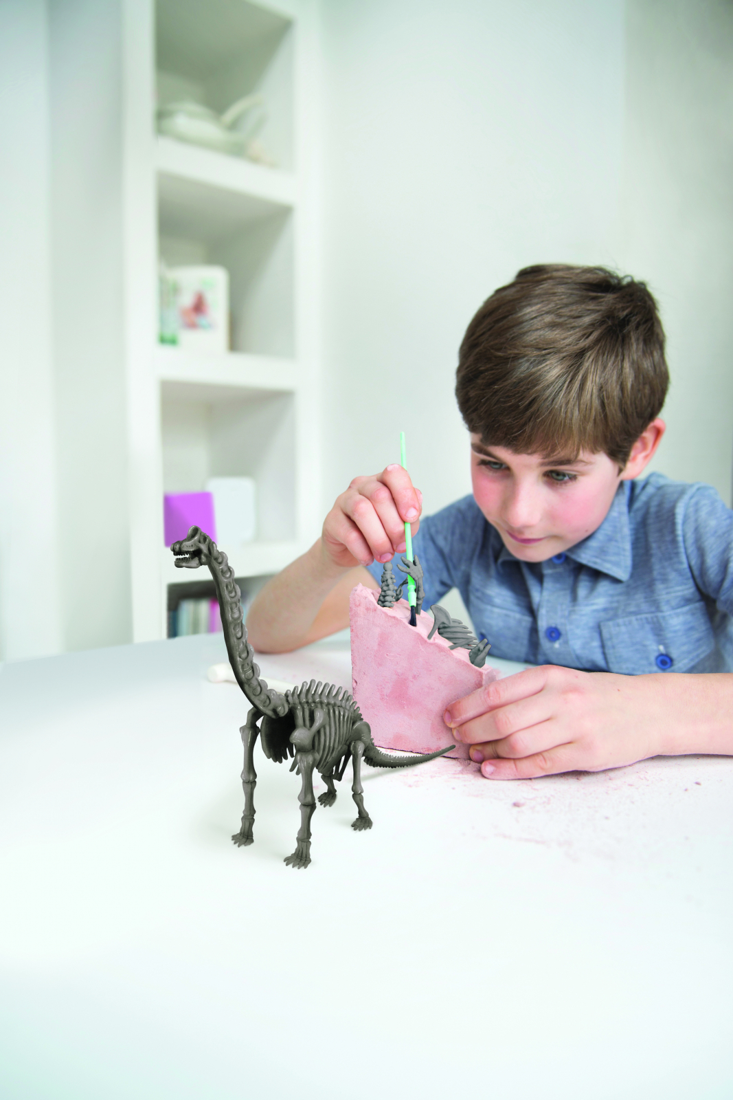 Sapa un dinozaur Brachiosaurus: incorporat in acest bloc dur de ipsos este un schelet complet, realist al unui Brachiosaurus , si depinde de tine sa-l scoti. Utilizati capatul plat al instrumentului de sapat pentru a razui cu grija bucati de tencuiala, putin cate putin. Odata ce ai lovit osul, treceti la perie pentru a o elibera usor de praf. Toate oasele se conecteaza cu usurinta intre ele si se tin puternic folosind ceara moale inclusa. Configurati afisajul uimitor, astfel incat toata lumea sa va poata verifica descoperirea fascinanta , Exista chiar si lucruri amuzante despre Brachiosaurus imprimate pe spate. Sapa, descopera si inspira-te cu setul 4M Dig A Dinosaur. Schelet afisabil de Brachiosaurus incorporat in caramida de ipsos. Incurajeaza dexteritatea motrica fina, pasiunea pentru invatare si interesul pentru paleontologie. Copiii se simt ca niste adevarati paleontologi care isi scot propriul schelet de dinozaur. O unealta de sapat faciliteaza taierea caramizii de ipsos. Utilizati o perie pentru a indeparta usor praful din jurul oaselor. Include bloc de ipsos cu schelet Brachiosaurus incorporat, unealta de sapat, perie, ceara moale pentru pozitionarea fosilei, afisaj din carton cu platforma si fapte amuzante. Instructiuni detaliate de asamblare si ingrijire incluse. Scheletul masoara aproximativ 19 cm inaltime cand este asamblat. Materiale de calitate pentru experienta exceptionala de paleontolog. Acest set este un proiect stiintific distractiv pentru copii si intreaga familie, care dezvolta concentrarea, capacitatea de rezolvare a problemelor si motricitatea fina! Varsta 8+; cu ajutorul unui adult, poate fi folosit inca de la 5 ani. Dimensiune cutie: 17 cm x 22 cm x 6 cm