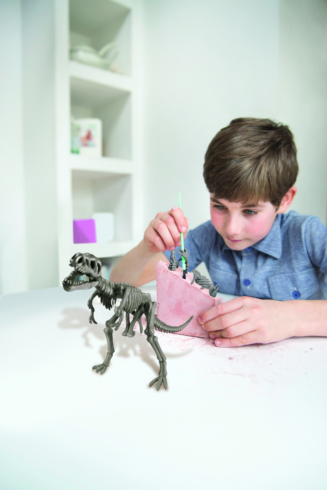 Sapa un dinozaur T-Rex: incorporat in acest bloc dur de ipsos este un schelet complet, realist al unui Tyrannosaurus Rex , si depinde de tine sa-l scoti. Utilizati capatul plat al instrumentului de sapat pentru a razui cu grija bucati de tencuiala, putin cate putin. Odata ce ai lovit osul, treceti la perie pentru a o elibera usor de praf. Toate oasele se conecteaza cu usurinta intre ele si se tin puternic folosind ceara moale inclusa. Configurati afisajul uimitor, astfel incat toata lumea sa va poata verifica descoperirea fascinanta , Exista chiar si lucruri amuzante despre T-Rex imprimate pe spate. Sapa, descopera si inspira-te cu setul 4M Dig A Dinosaur. Schelet afisabil de T-Rex incorporat in caramida de ipsos. Incurajeaza dexteritatea motrica fina, pasiunea pentru invatare si interesul pentru paleontologie. Copiii se simt ca niste adevarati paleontologi care isi scot propriul schelet de dinozaur. O unealta de sapat faciliteaza taierea caramizii de ipsos. Utilizati o perie pentru a indeparta usor praful din jurul oaselor. Include bloc de ipsos cu schelet T-Rex incorporat, unealta de sapat, perie, ceara moale pentru pozitionarea fosilei, afisaj din carton cu platforma si fapte amuzante. Instructiuni detaliate de asamblare si ingrijire incluse. Scheletul masoara aproximativ 19 cm inaltime cand este asamblat. Materiale de calitate pentru experienta exceptionala de paleontolog. Acest set este un proiect stiintific distractiv pentru copii si intreaga familie, care dezvolta concentrarea, capacitatea de rezolvare a problemelor si motricitatea fina! Varsta 8+; cu ajutorul unui adult, poate fi folosit inca de la 5 ani. Dimensiune cutie: 17 cm x 22 cm x 6 cm