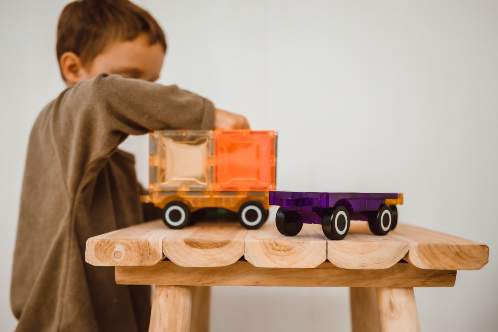 Placile magnetice MAGBLOX reg;Magnetic Building au fost concepute pentru a stimula si incuraja dezvoltarea cognitiva a copiilor, constientizarea spatiala, abilitatile motorii fine si grosiere, toate in timp ce , žInvatam prin joaca, ! Baza magnetica pentru masina MAGBLOX reg; (TwinPack) este realizata dintr-un plastic ABS reciclat, prevazut cu magneti puternici. In plus, rotile din lemn sunt fabricate din lemn de artar din ferme durabile si sustenabile. Setul contine un sasiu albastru si unul portocaliu. Rotile din lemn sunt acoperite cu o vopsea netoxica pe baza de apa. Baza masinii MAGBLOX reg; este excelenta pentru a incuraja si a starni imaginatia copiilor si ore de joaca creativa. Dimensiuni cutie: 21x10x8 cm Cresteti invatarea si activitatile STEM ale copilului dvs. prin: Abilitati de constructie si constructie Invatare despre simetrie si modele Construirea si intelegerea formelor si structurilor 2D si 3D Recunoasterea formelor Relatii matematice si spatiale Persistenta, abilitati de rezolvare a problemelor, abilitati de coordonare ochi-mana Creativitate fara sfarsit Culorile, transluciditatea si magnetii le permit copiilor sa construiasca si sa creeze in moduri in care nu pot cu blocurile standard. Setul magnetic Magblox este combinatia perfecta intre jocul liber (open-end) si cel STEM (Stiinta, Tehnologie, Inginerie, Matematica). Atat un joc creativ, imaginativ, ce imbie la jocul de rol, cat si un joc care dezvolta abilitatile tehnice atat de necesare in zilele noastre. Toate piesele MAGBLOX reg; sunt compatibile intre ele si cu alte marci de placi magnetice. Sunt sigure, durabile si fabricate din plastic reciclat ABS de calitate alimentara, fara BPA si fara ftalati. Seturile magnetice de constructie MAGBLOX reg; sunt sigure pentru copii si respecta standardele internationale de calitate si siguranta AS NZS ISO 8124, EN71, ASTM, si CPSIA. MAGBLOX reg; este potrivit pentru copiii cu varsta de la 3 ani in sus. Designul MAGBLOX reg; este o idee originala a lui JC Ingenium reg;. Toate seturile de constructie MAGBLOX reg; sunt compatibile cu alte placi magnetice, inclusiv cu placile magnetice Magbrix - compatibile cu caramizi de constructie tip Lego, MegaBlocks, etc. AVERTISMENT! Nerecomandat copiilor mai mici de 3 ani. Produsul poate contine piese mici care se pot inghiti sau inhala, existand pericolul de sufocare. Nu lasati ambalajele produselor la indemana copiilor, indepartati toate ambalajele inainte de a oferi jucaria copilului. Jucaria contine magneti sau componente magnetice. Magnetii care se lipesc unul de celalalt sau se ataseaza de un obiect metalic in interiorul corpului uman pot provoca accidente grave. Cereti imediat asistenta medicala in cazul in care magnetii sunt inghititi sau inhalati.