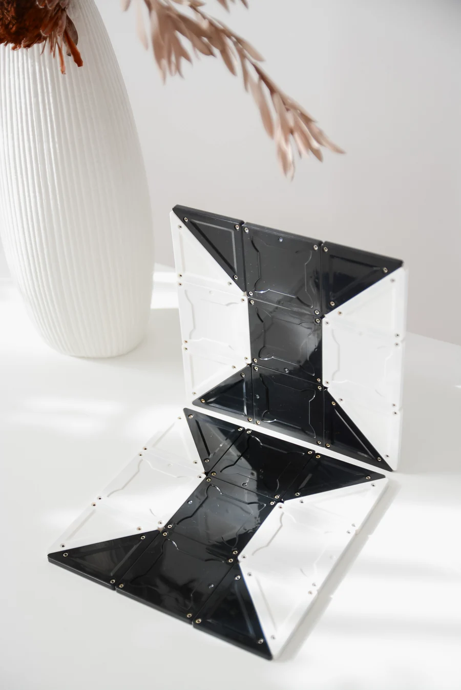 Placile magnetice MAGBLOX reg;Magnetic Building au fost concepute pentru a stimula si incuraja dezvoltarea cognitiva a copiilor, constientizarea spatiala, abilitatile motorii fine si grosiere, toate in timp ce , žInvatam prin joaca, ! Setul contine toate lucrurile care ne plac la Magblox, realizat din plastic ABS reciclat, magneti puternici, nituri argintate si simetrie perfecta a triunghiurilor isoscele. Setul magnetic Magblox contine 92 piese magnetice in culori monocrome, alb si negru si o brosura de idei: 32 de patrate 12 triunghiuri isoscele 16 triunghiuri echilaterale 12 triunghiuri dreptunghiulare 4 trapezoizi 8 forme L 8 forme E Dimensiuni cutie: 33 x 24 x 5.5 cm Setul Magblox reg; Monochrome este o alegere excelenta pentru minimizarea confuziei si imbunatatirea concentrarii, in special in mediile educationale, unde claritatea si concentrarea sunt esentiale. Acest set prezinta doua optiuni de culoare solida alb-negru, care ajuta la reducerea dezordinii vizuale si la simplificarea mediului vizual. Parte a dualismului elegantei, acest set monocrom este conceput si pentru persoanele cu afectiuni oculare, facilitandu-le utilizarea. Setul Magblox reg; Magnetic Tiles Monochrome promoveaza incluziunea si accesibilitatea, oferind copiilor si adultilor o optiune atractiva si minimalista. Acesta prezinta o varietate de forme, inclusiv patrate mici, triunghiuri isoscele, echilaterale si dreptunghiulare, trapezoizi, forme E si L, plus o idee de brosura. Cresteti invatarea si activitatile STEM ale copilului dvs. prin: Abilitati de constructie si constructie Invatare despre simetrie si modele Construirea si intelegerea formelor si structurilor 2D si 3D Recunoasterea formelor Relatii matematice si spatiale Persistenta, abilitati de rezolvare a problemelor, abilitati de coordonare ochi-mana Creativitate fara sfarsit Culorile, transluciditatea si magnetii le permit copiilor sa construiasca si sa creeze in moduri in care nu pot cu blocurile standard. Setul magnetic Magblox este combinatia perfecta intre jocul liber (open-end) si cel STEM (Stiinta, Tehnologie, Inginerie, Matematica). Atat un joc creativ, imaginativ, ce imbie la jocul de rol, cat si un joc care dezvolta abilitatile tehnice atat de necesare in zilele noastre. Toate piesele MAGBLOX reg; sunt compatibile intre ele si cu alte marci de placi magnetice. Sunt sigure, durabile si fabricate din plastic reciclat ABS de calitate alimentara, fara BPA si fara ftalati. Seturile magnetice de constructie MAGBLOX reg; sunt sigure pentru copii si respecta standardele internationale de calitate si siguranta AS NZS ISO 8124, EN71, ASTM, si CPSIA. MAGBLOX reg; este potrivit pentru copiii cu varsta de la 3 ani in sus. Designul MAGBLOX reg; este o idee originala a lui JC Ingenium reg;. Toate seturile de constructie MAGBLOX reg; sunt compatibile cu alte placi magnetice, inclusiv cu placile magnetice Magbrix - compatibile cu caramizi de constructie tip Lego, MegaBlocks, etc. AVERTISMENT! Nerecomandat copiilor mai mici de 3 ani. Produsul poate contine piese mici care se pot inghiti sau inhala, existand pericolul de sufocare. Nu lasati ambalajele produselor la indemana copiilor, indepartati toate ambalajele inainte de a oferi jucaria copilului. Jucaria contine magneti sau componente magnetice. Magnetii care se lipesc unul de celalalt sau se ataseaza de un obiect metalic in interiorul corpului uman pot provoca accidente grave. Cereti imediat asistenta medicala in cazul in care magnetii sunt inghititi sau inhalati.