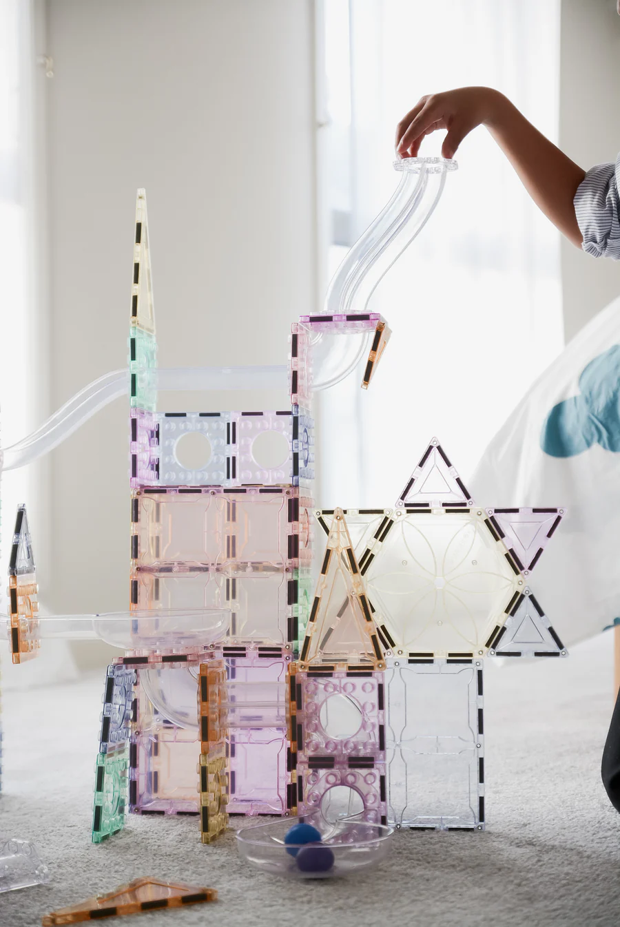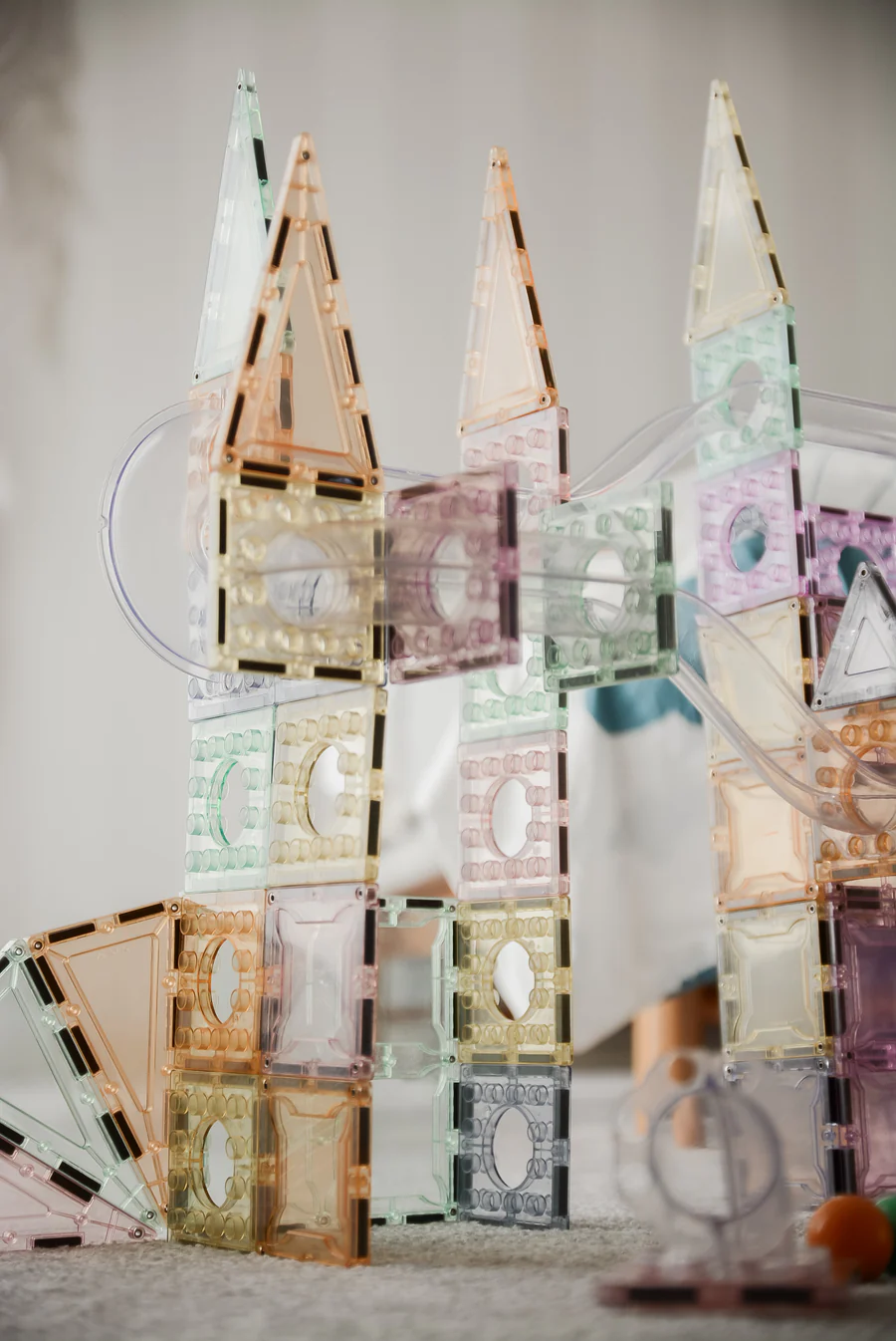 Placile magnetice MAGBLOX reg;Magnetic Building au fost concepute pentru a stimula si incuraja dezvoltarea cognitiva a copiilor, constientizarea spatiala, abilitatile motorii fine si grosiere, toate in timp ce , žInvatam prin joaca, ! Magbrix Ball Run ofera distractia suprema in constructii! Este versatila nu numai prin designul sau deschis, ci si prin unicitatea sa, in care copilul dumneavoastra poate adauga la ea blocurile de constructie preferate in timp ce bila alearga pe circuit. Conectorii au fost conceputi pentru a-i ajuta pe copii sa isi imbunatateasca si sa demonstreze o utilizare solida a abilitatilor motrice, pe masura ce monteaza piesele fara teama de a le strica sau de a se frustra pentru ca nu reusesc sa o asambleze. Conectorii au un sistem de interblocare identificabil cu alte jucarii de constructie, cum ar fi Duplo reg;, ceea ce face ca produsul nostru sa fie usor de utilizat cu ore nesfarsite de bucurie. Cea mai buna distractie de constructie! Setul magnetic Magbrix Ball Run Pastel contine 98 piese in culori pastel: 30 de patrate conectoare pastel 12 tuburi in unghi drept (indoire la 90 de grade) 12 tuburi in forma de U (indoire la 180 de grade) 10 tuburi inclinate de alunecare 10 tuburi lungi si drepte 16 tuburi drepte scurte 2 boluri rotative 6 bile de lemn pastel 1 brosura cu idei Dimensiuni cutie: 46 x 33.5 x 10.5cm Cresteti invatarea si activitatile STEM ale copilului dvs. prin: Abilitati de constructie si constructie Invatare despre simetrie si modele Construirea si intelegerea formelor si structurilor 2D si 3D Recunoasterea formelor Relatii matematice si spatiale Persistenta, abilitati de rezolvare a problemelor, abilitati de coordonare ochi-mana Creativitate fara sfarsit Culorile, transluciditatea si magnetii le permit copiilor sa construiasca si sa creeze in moduri in care nu pot cu blocurile standard. Setul magnetic Magblox este combinatia perfecta intre jocul liber (open-end) si cel STEM (Sttinta, Tehnologie, Inginerie, Matematica). Atat un joc creativ, imaginativ, ce imbie la jocul de rol, cat si un joc care dezvolta abilitatile tehnice atat de necesare in zilele noastre. Toate piesele MAGBLOX reg; sunt compatibile intre ele si cu alte marci de placi magnetice. Sunt sigure, durabile si fabricate din plastic reciclat ABS de calitate alimentara, fara BPA si fara ftalati. Seturile magnetice de constructie MAGBLOX reg; sunt sigure pentru copii si respecta standardele internationale de calitate si siguranta AS NZS ISO 8124, EN71, ASTM, si CPSIA. MAGBLOX reg; este potrivit pentru copiii cu varsta de la 3 ani in sus. Designul MAGBLOX reg; este o idee originala a lui JC Ingenium reg;. Toate seturile de constructie MAGBLOX reg; sunt compatibile cu alte placi magnetice, inclusiv cu placile magnetice Magbrix - compatibile cu caramizi de constructie tip Lego, MegaBlocks, etc. AVERTISMENT! Nerecomandat copiilor mai mici de 3 ani. Produsul poate contine piese mici care se pot inghiti sau inhala, existand pericolul de sufocare. Nu lasati ambalajele produselor la indemana copiilor, indepartati toate ambalajele inainte de a oferi jucaria copilului. Jucaria contine magneti sau componente magnetice. Magnetii care se lipesc unul de celalalt sau se ataseaza de un obiect metalic in interiorul corpului uman pot provoca accidente grave. Cereti imediat asistenta medicala in cazul in care magnetii sunt inghititi sau inhalati.