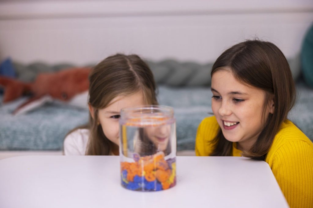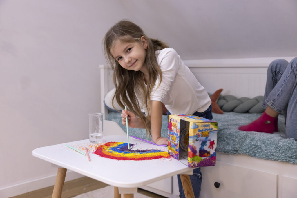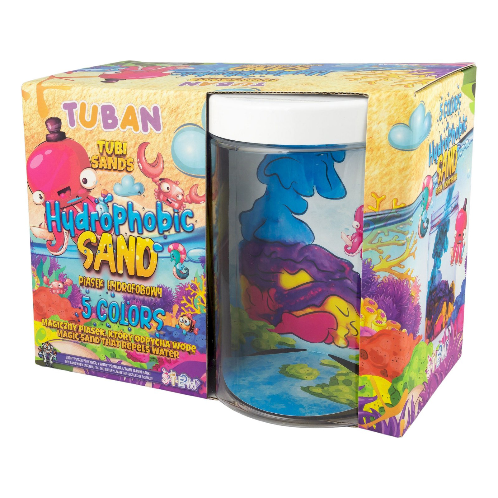 Descopera nisipul extraordinar care nu se uda! Joaca cu nisipul hidrofob este ceva interesant pentru toti pasionatii de experimente si distractie creativa. Cea mai fascinanta caracteristica a sa este capacitatea de a respinge apa. Culorile nisipului pot fi combinate in mod liber si aruncate in acvariul umplut cu apa din set. Interesant este faptul ca nisipul este inca uscat dupa ce a fost aruncat in apa. Puteti sa-l scoateti si sa-l scufundati din nou, admirand formele interesante pe care le creeaza. Acest joc ii poate introduce pe copii in cunoasterea proprietatilor fizice ale substantelor. Setul include: 5 culori de nisip, cate 40 g fiecare borcan pentru apa pahar gradat INSTRUCTIUNI: - Se toarna apa in borcan. - Deschideti sacul cu nisip si turnati-l in paharul de masurare. - Turnati nisipul in apa si urmariti ce se intampla cu nisipul. Simtiti-va ca un om de stiinta! Nisipul nostru poate sta mult timp in apa, iar cand este scos din ea, ESTE USCAT! Este greu de crezut, nu-i asa? Faceti un experiment si vedeti cu ochii vostri: Puneti nisip de diferite culori intr-un borcan plin cu apa. Formati si observati diferitele forme pe care le va crea. Acum scoateti nisipul din apa si observati ca... ESTE USCAT! Uimitor, nu-i asa? Puteti, de asemenea, sa turnati nisip pe o farfurie si sa adaugati cateva picaturi de apa. Veti observa fenomenul uimitor al hidrofobiei! Dimensiunea pachetului: 19,5 x 14,5 x 10,5 cm Varsta: 3+ IMPORTANT: Componentele incluse in set au fost testate si au toate certificatele de siguranta necesare. Nisipul este sigur pentru copii. Fabricat in Polonia.