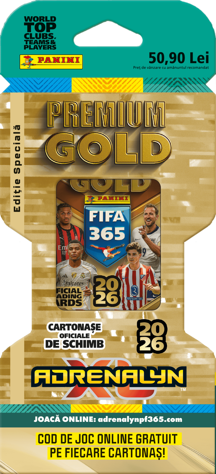 Adaugă un plus de strălucire colecției tale cu Ecoblister-ul Premium Gold, ediția exclusivă Panini FIFA 365 Adrenalyn XL 2025–2026. Acest set special este conceput pentru colecționarii care caută cartonașe rare și spectaculoase, incluzând carduri premium ce evidențiază cei mai buni jucători și echipe din lume, cu accent pe FIFA World Cup 2026.