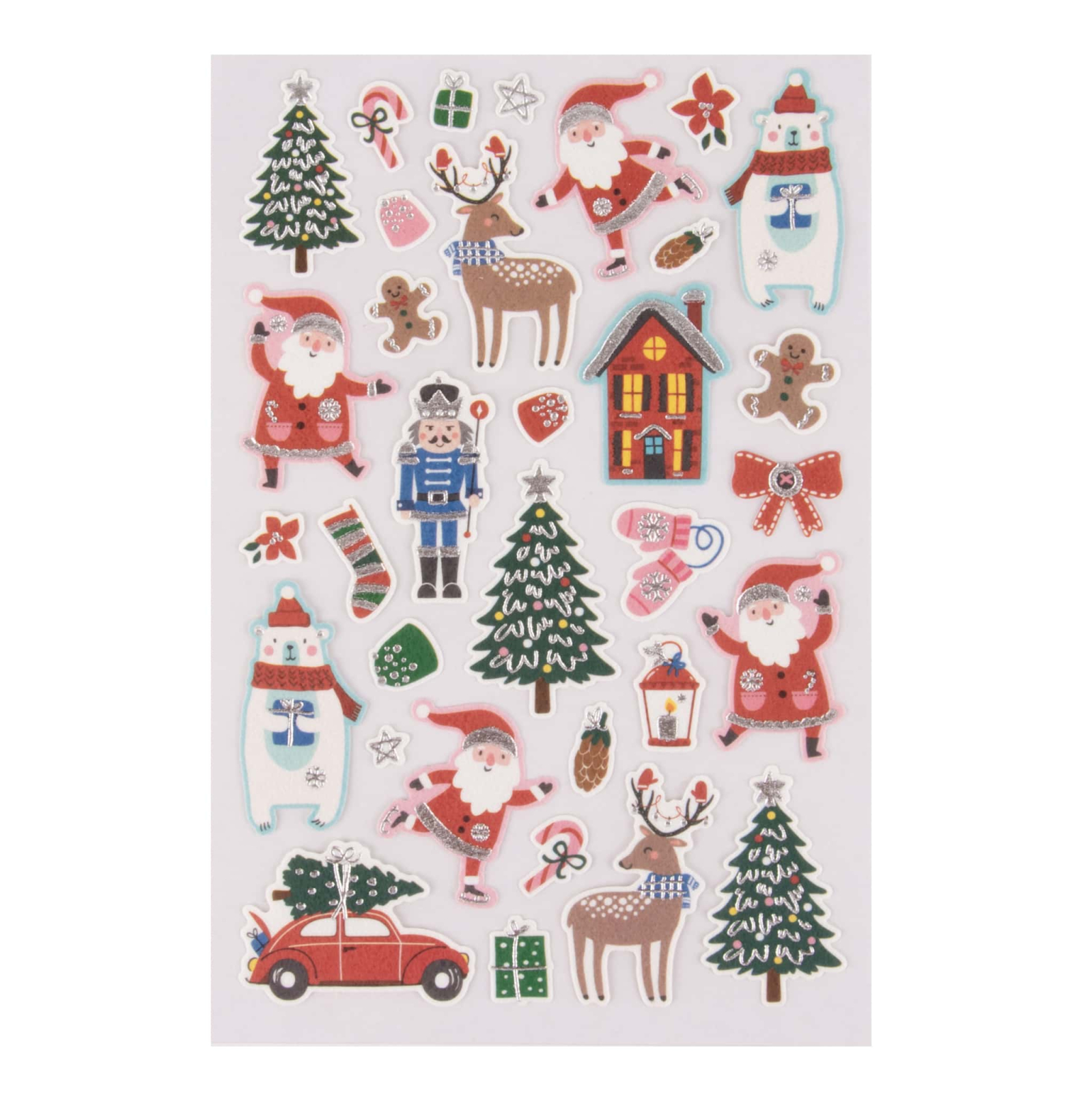 Pungă cu stickere de Crăciun cu model Schi de Crăciun. Fiecare pungă conține o foaie cu 33 de stickere de dimensiuni și modele asortate.