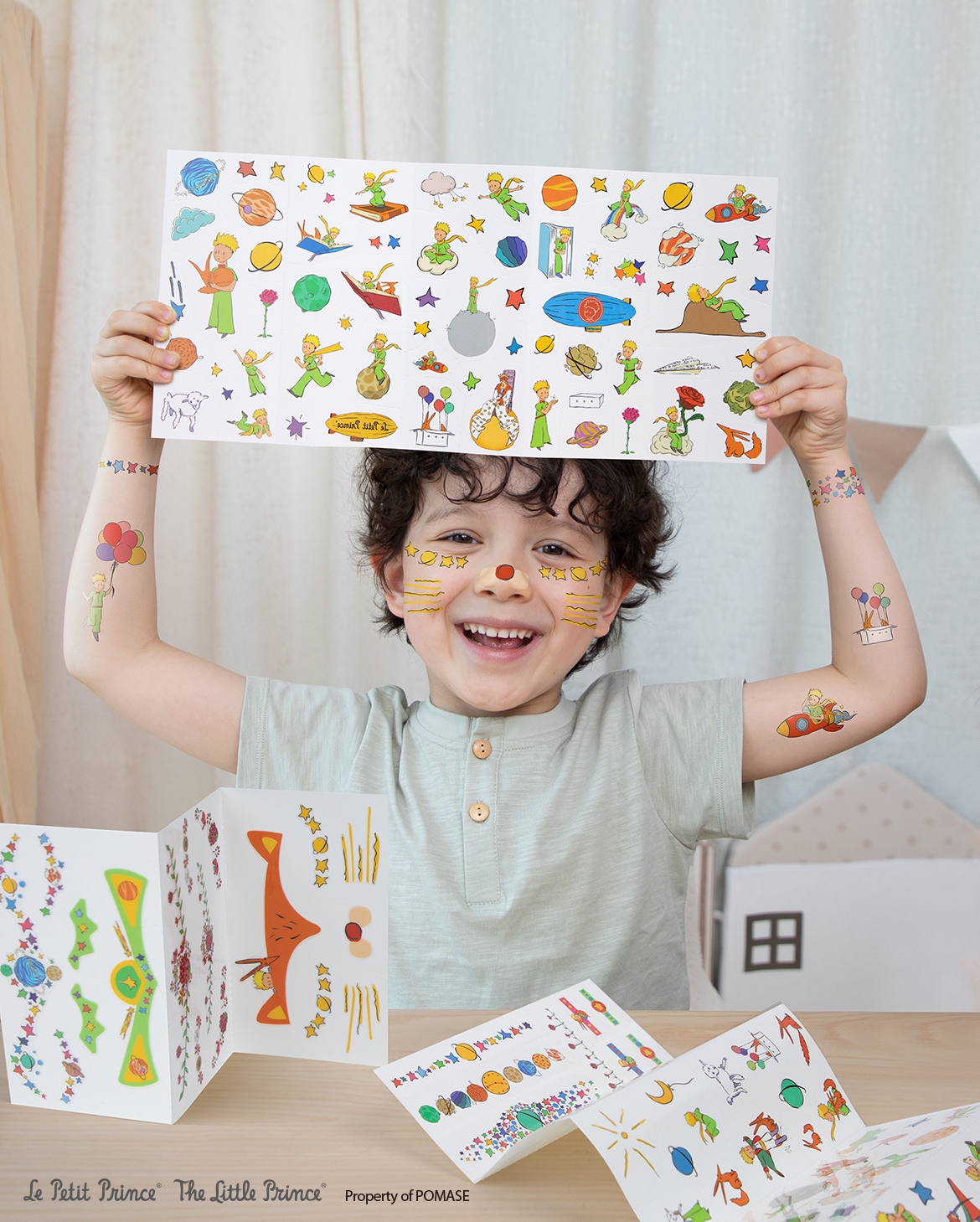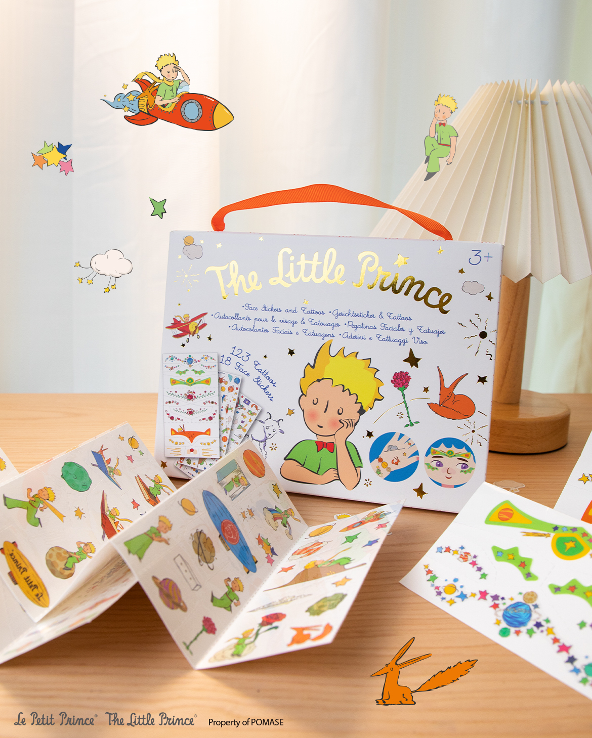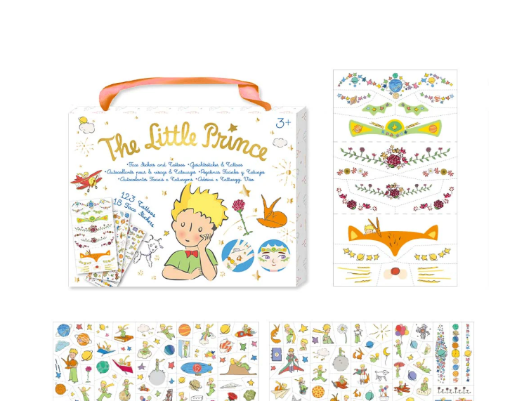 Stickere si tatuaje pentru fata - Micul Print Transforma fiecare moment de joaca intr-o aventura magica cu acest set de stickere si tatuaje pentru fata inspirat din Micul Print! Ideal pentru copii sau oricine iubeste dress-up-ul, sigur si usor de folosit. Caracteristici principale: Ambalat intr-o cutiuta tip valiza, cu maner Peste 140 de stickere si tatuaje pe 3 coli mari Sigur pentru pielea copiilor si pielea sensibila (certificat EU CPSR) Aplicare si indepartare rapida, fara frustrari Linii perforate pentru rupere usoara a stickerelor Perfect pentru stimularea creativitatii si jocului de rol. Recomandat copiilor de la 3 ani in sus.