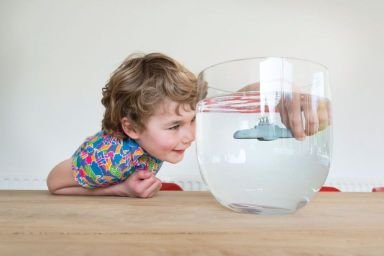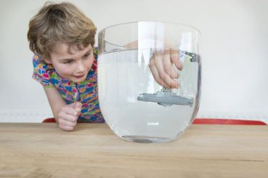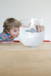 Vezi cum se scufunda submarinul si reapare la suprafata cu ajutorul prafului de copt. Este uimitor! Umpleti rezervorul submarinului cu praf de copt (neinclus) si urmariti cum acesta va continua sa se scufunde in adancuri si sa urce apoi la suprafata. Acesta jucarie, inventata cu circa 70 ani in urma, poate fi folosita si ca un experiment de chimie in fata unei clase de elevi curiosi. Important: folositi exclusiv praf de copt, nu bicarbonat de sodiu. Varsta 5 ani+ Dimensiune pachet: 13cm x 19.5cm x 2.4cm